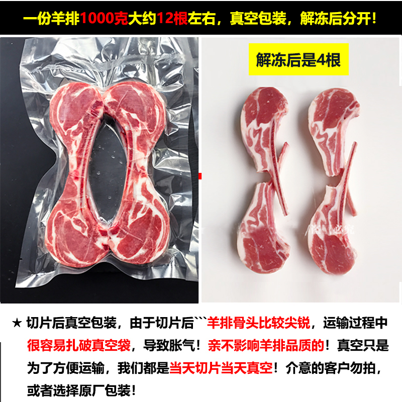 新鲜羊肉法式羊排清真羊排内蒙古特产12骨羊排羔羊烧烤包邮1000g