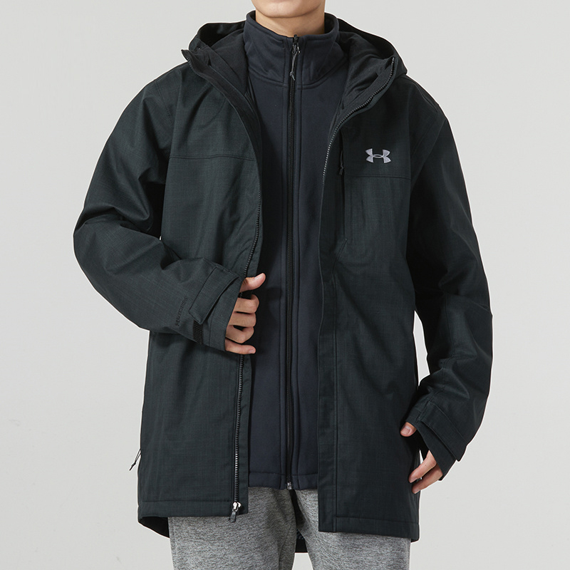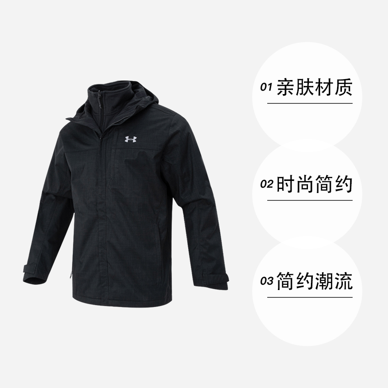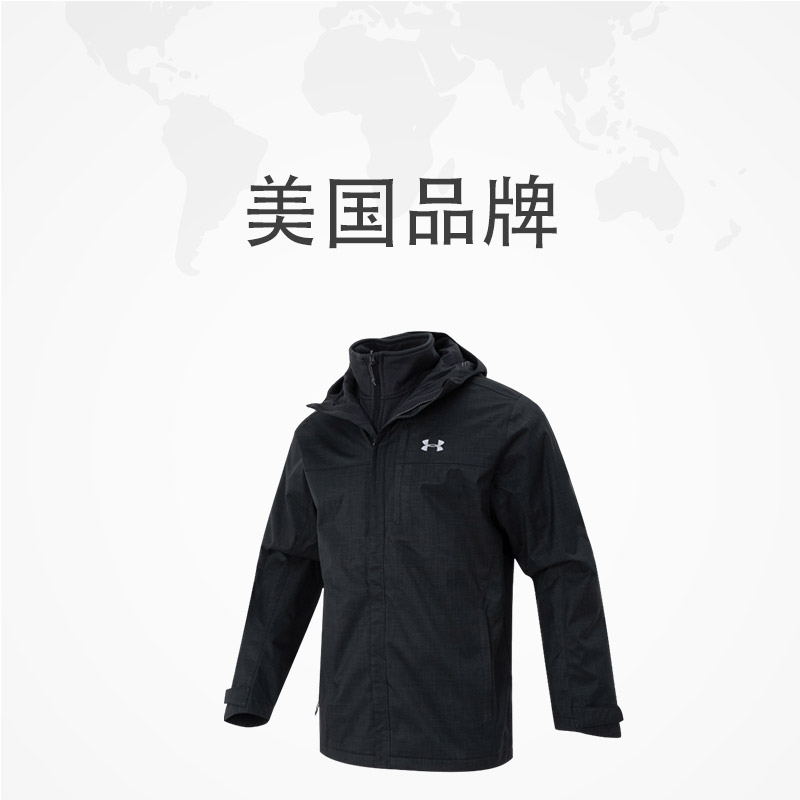 【自营】UA安德玛外套男装黑色运动服户外保暖三合一夹克连帽上衣