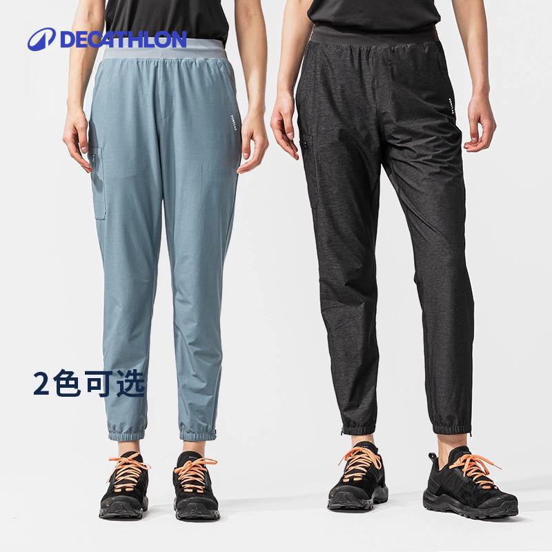 迪卡侬速干裤女户外运动休闲弹力拉链束脚春秋长裤男ODT2