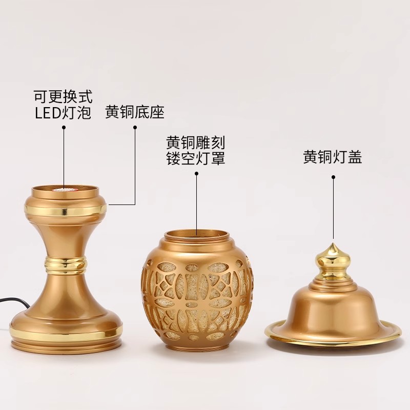 佛缘黄铜供佛灯家用佛前供灯供奉财神灯招财长明灯佛仙堂LED一对