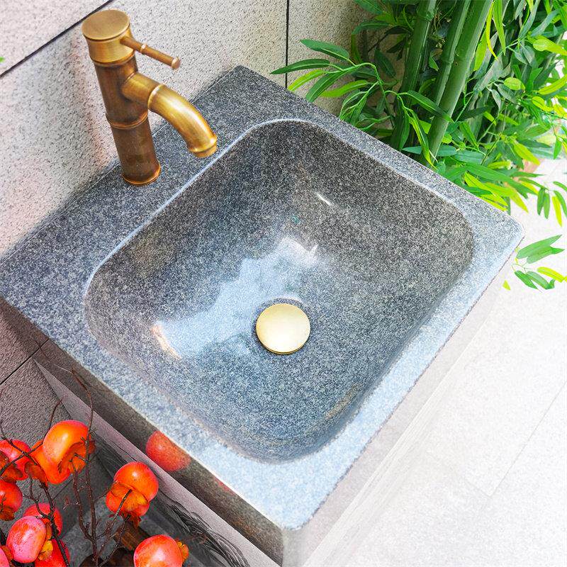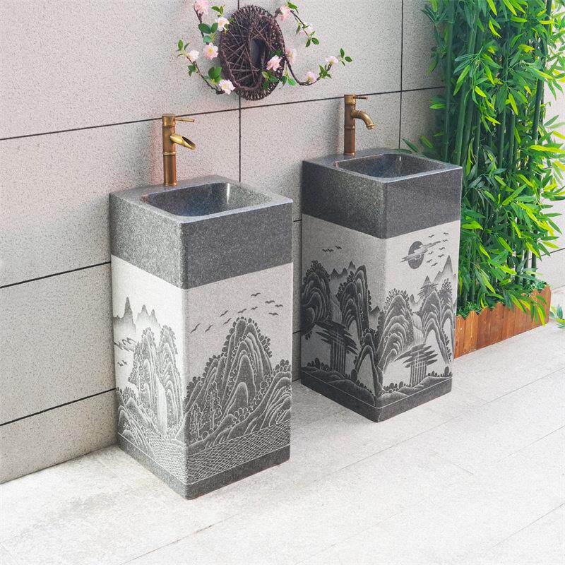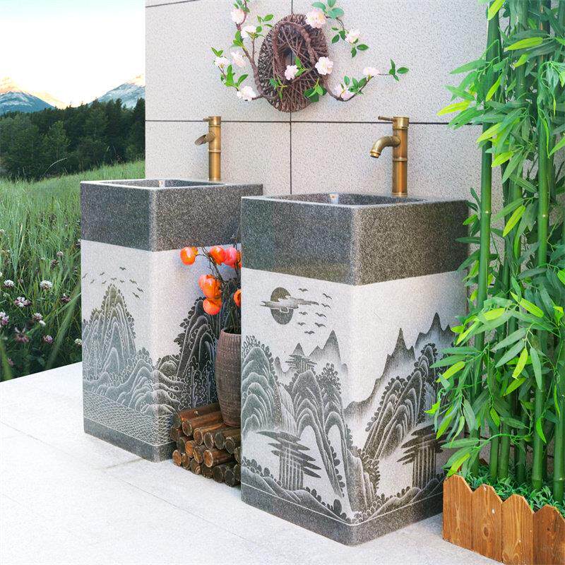 山中古典家装主材户外庭院洗手台大理石一体立柱盆石头洗手盆台盆