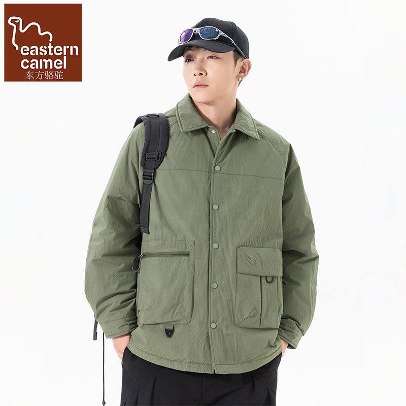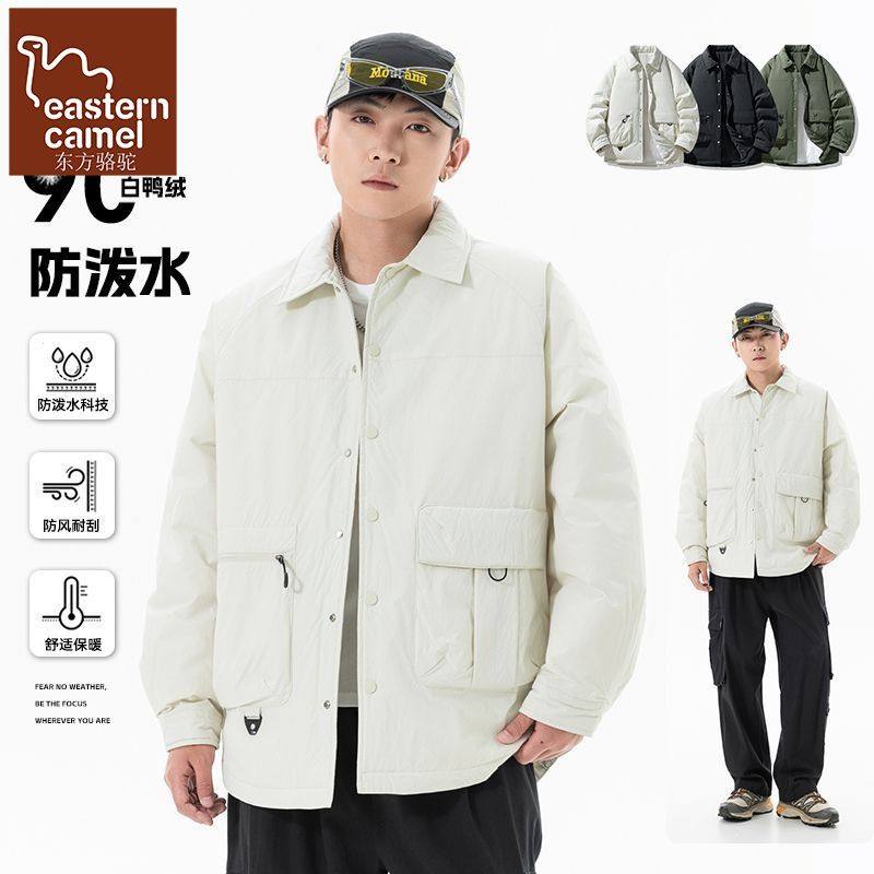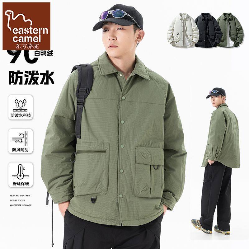 东方骆驼美式潮牌工装衬衫羽绒服男士冬季新款保暖防寒90鸭绒外套