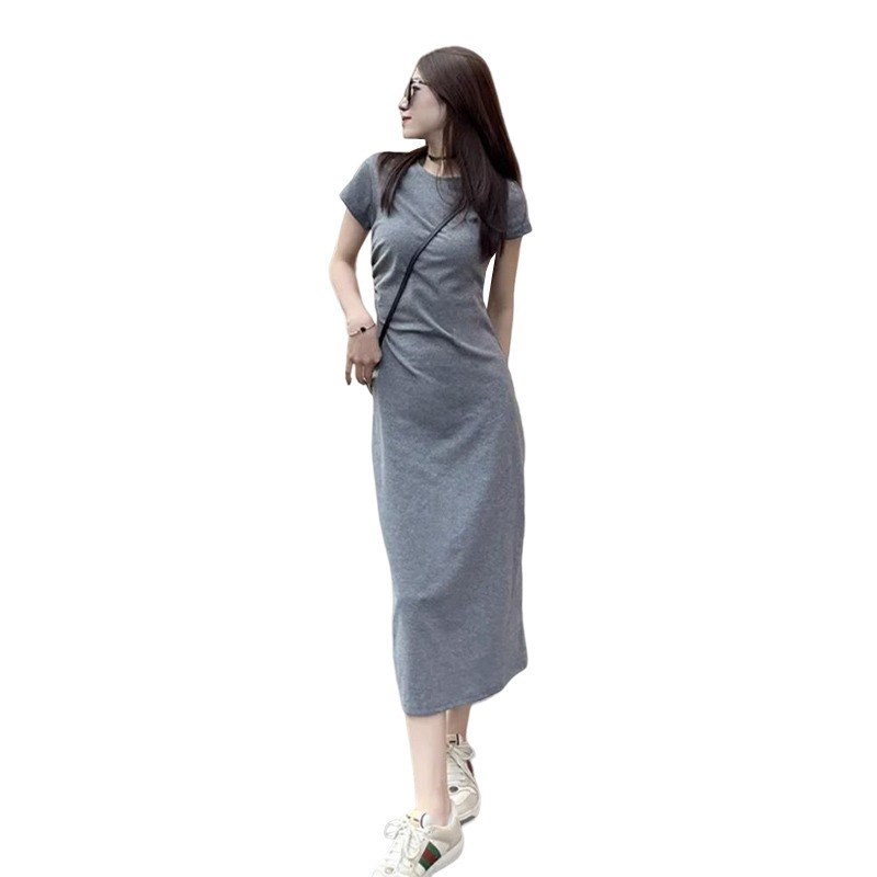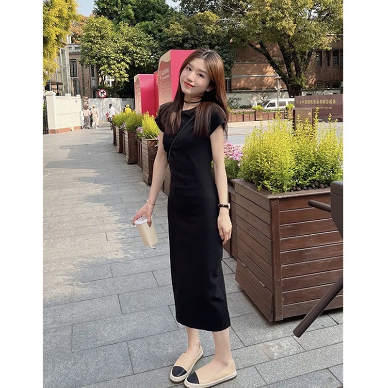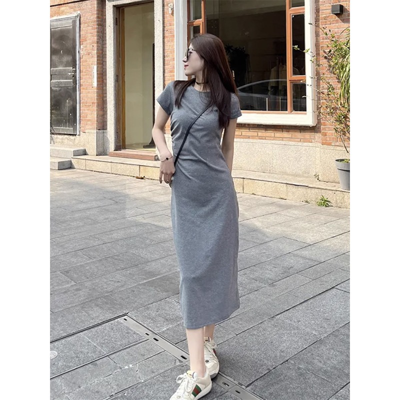 短袖t恤连衣裙女夏季2024新款纯棉修身显瘦中长款气质收腰裙子女