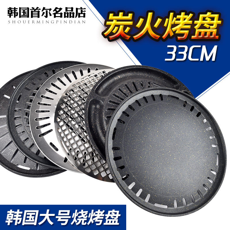 韩式商用烧烤盘家用330木炭烤肉盘烧烤篦子烤肉店不粘圆形烤盘