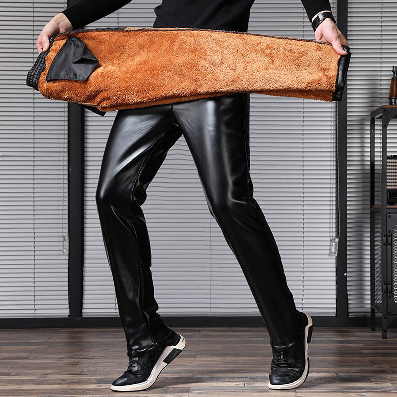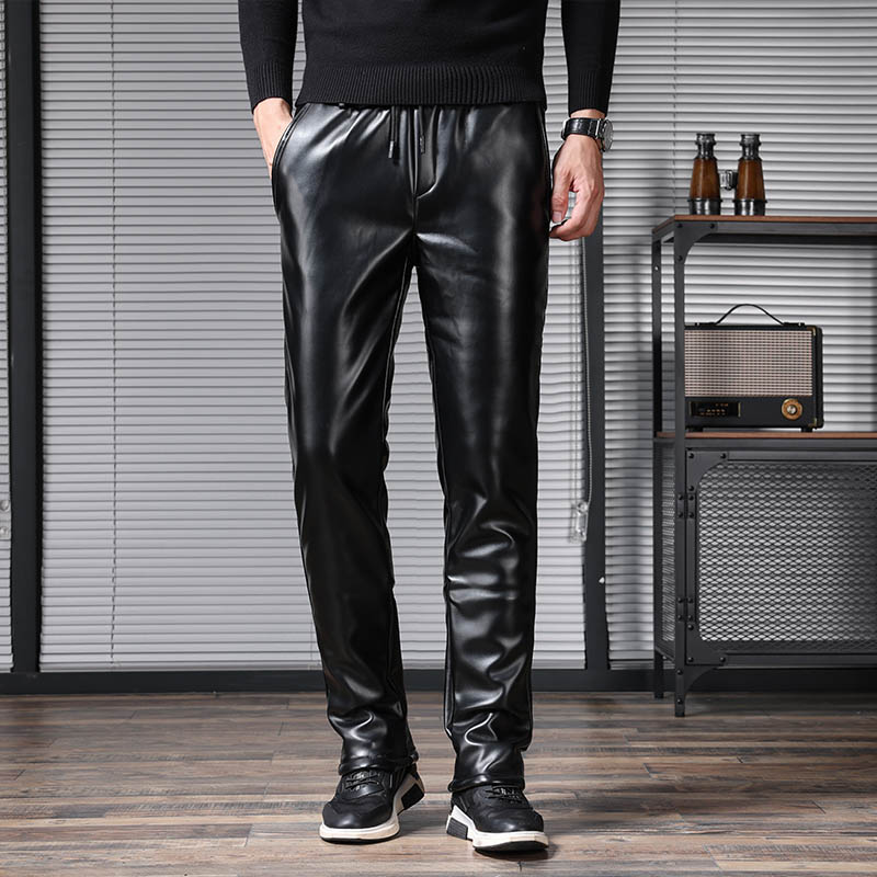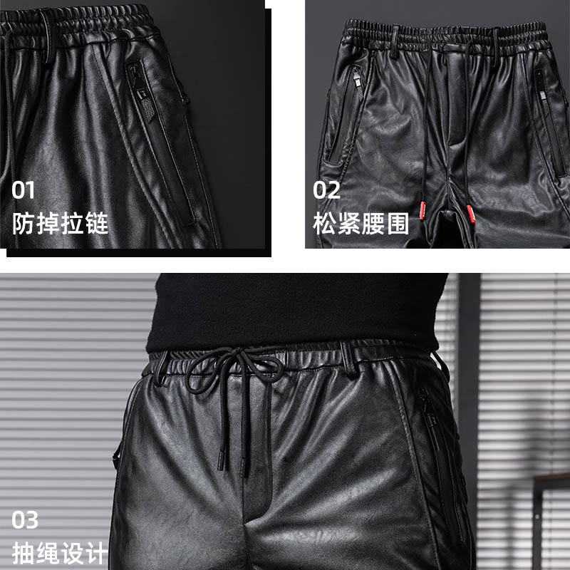 修身皮裤男冬季加绒加厚骑行弹力防风防水保暖机车青年小脚皮裤子