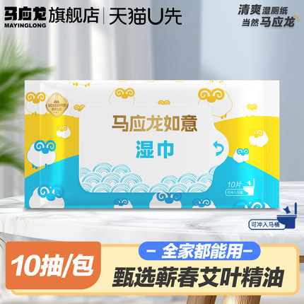 U先试用】马应龙湿厕纸小羊艾叶湿巾儿童擦屁股专用女便携10抽
