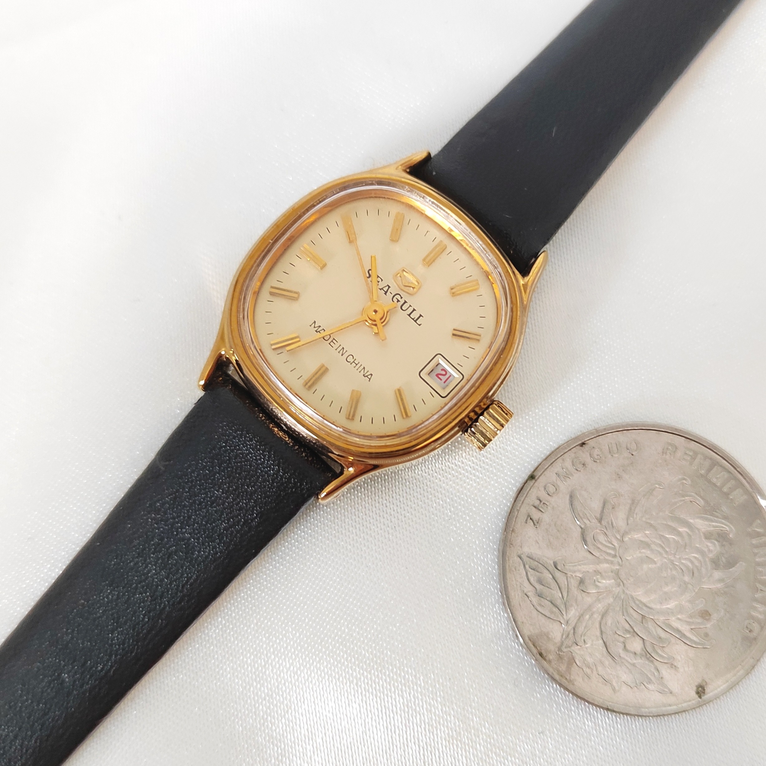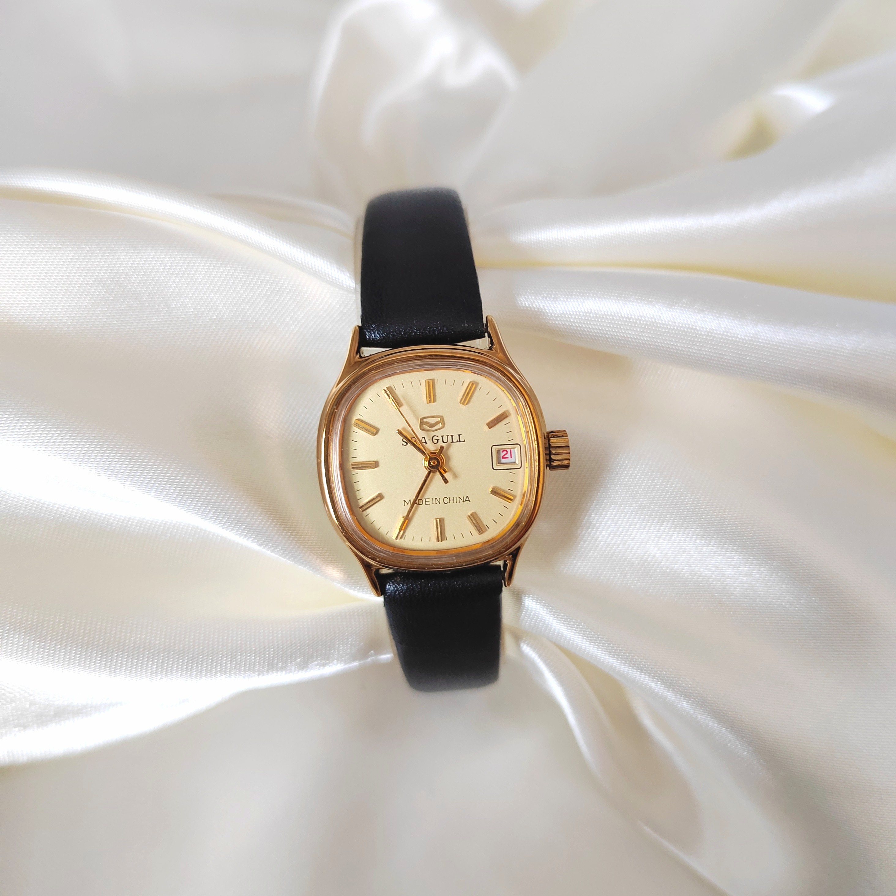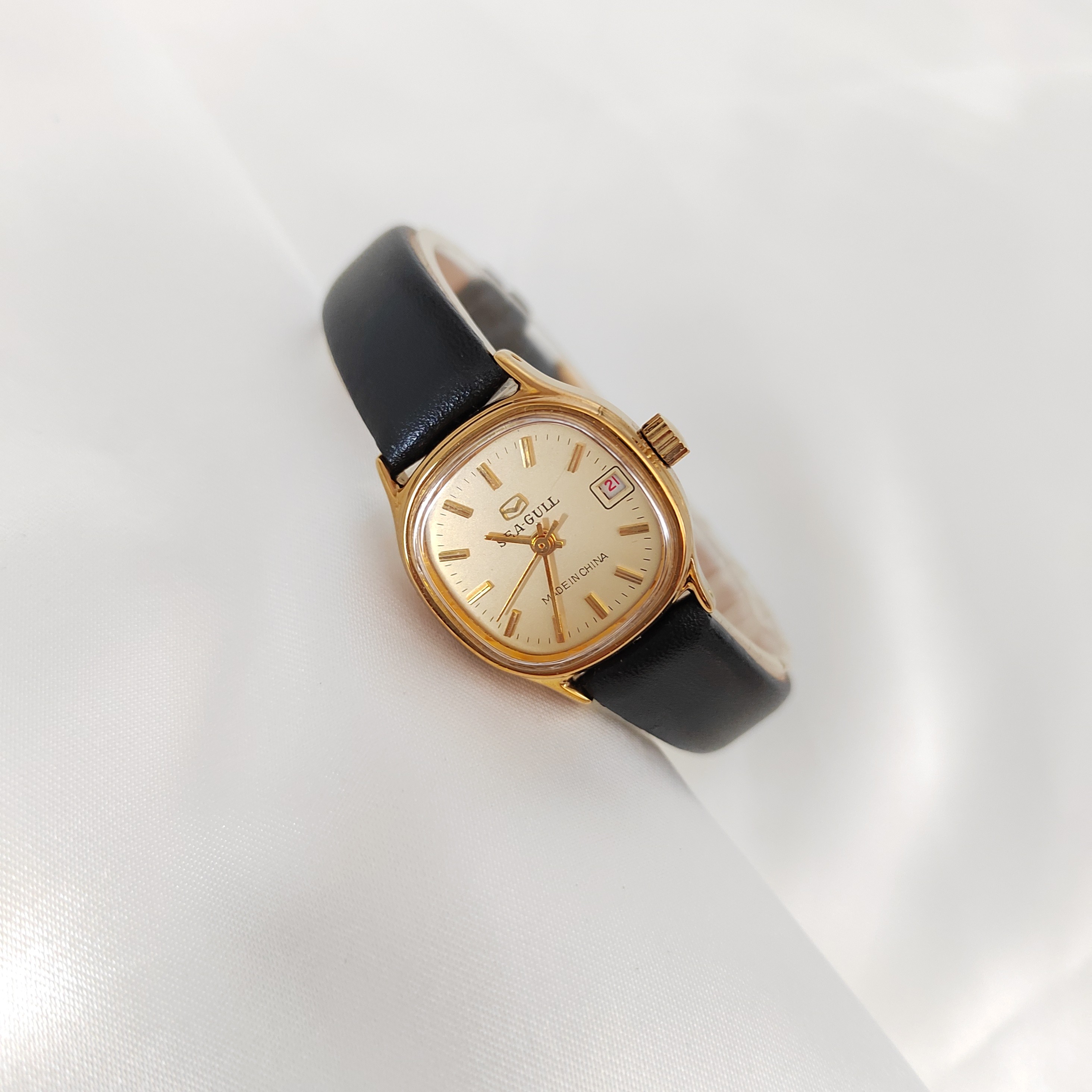 老品牌海鸥手动上弦机械金色方形经典清新气质复古学生考试女腕表