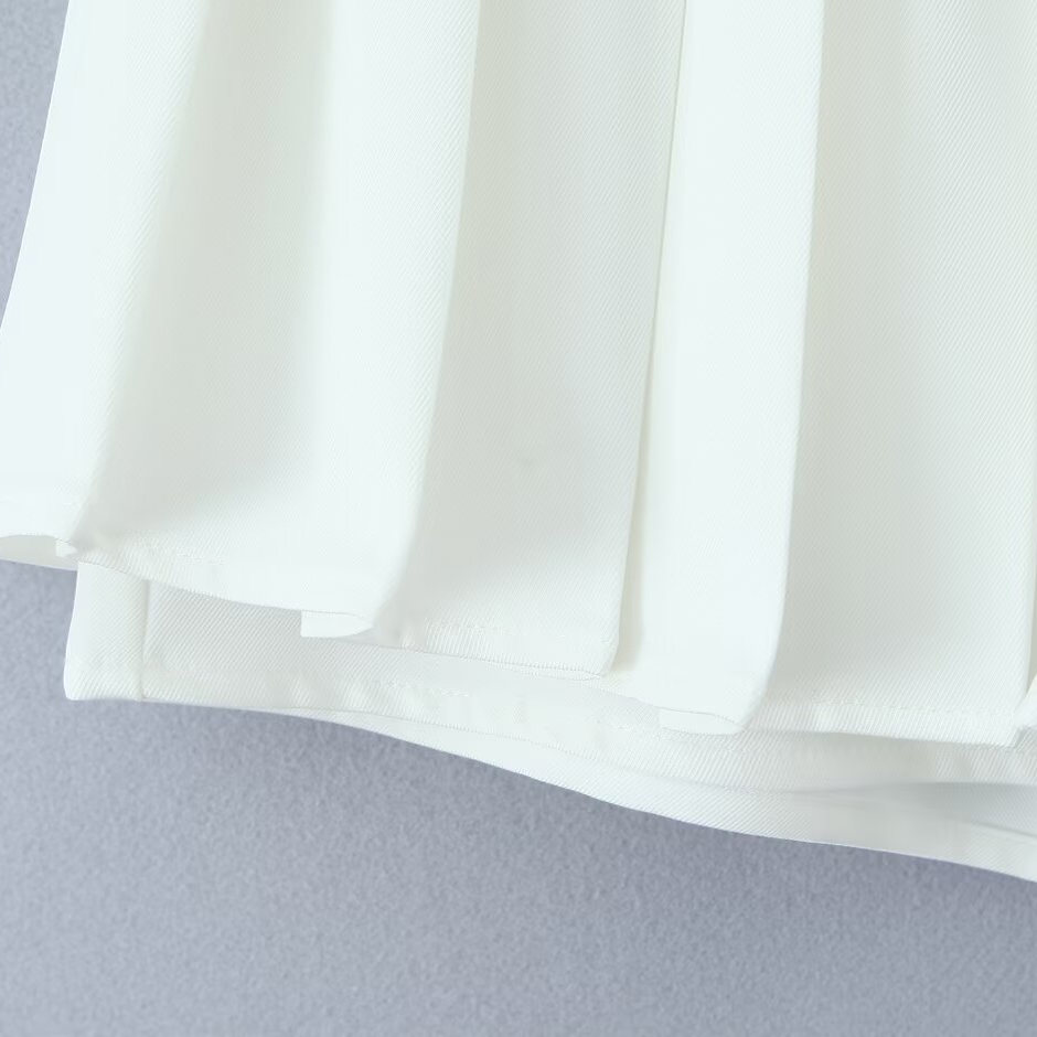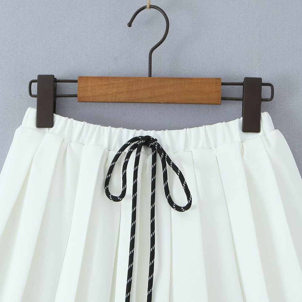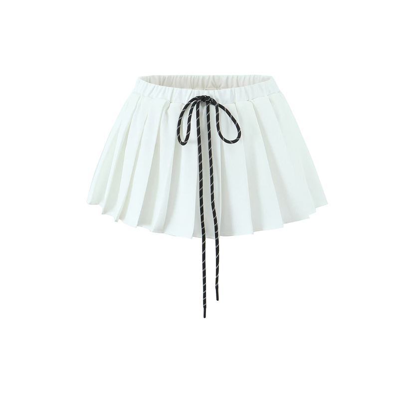 【包邮】甜美风撞色系带百褶裙内带防走光裤高腰A字半身裙短裙夏