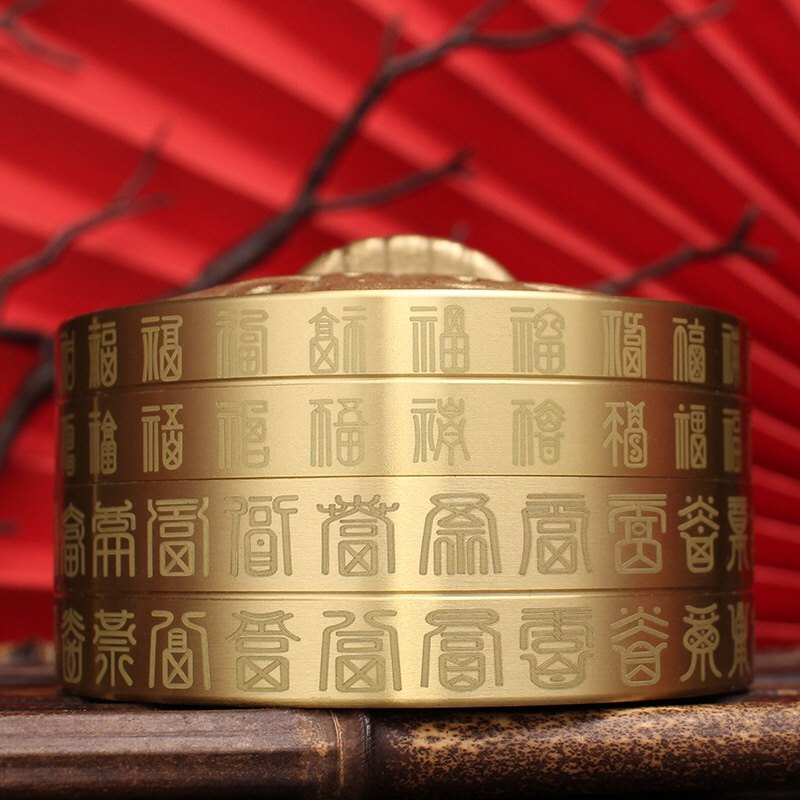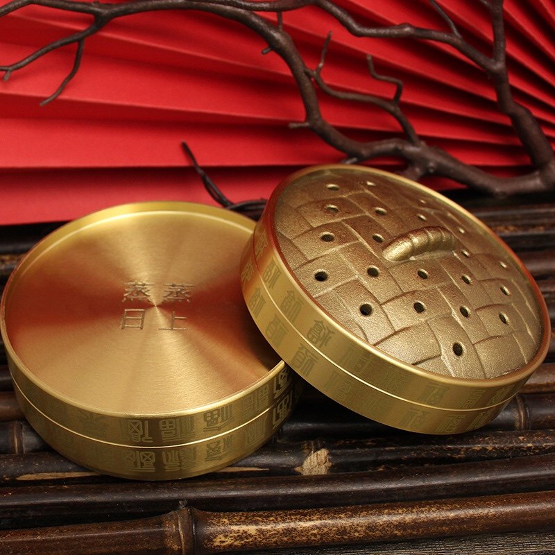 黄铜事业蒸笼蒸蒸日上百福盘珠宝首饰盒香粉茶叶罐储物收纳盒摆件
