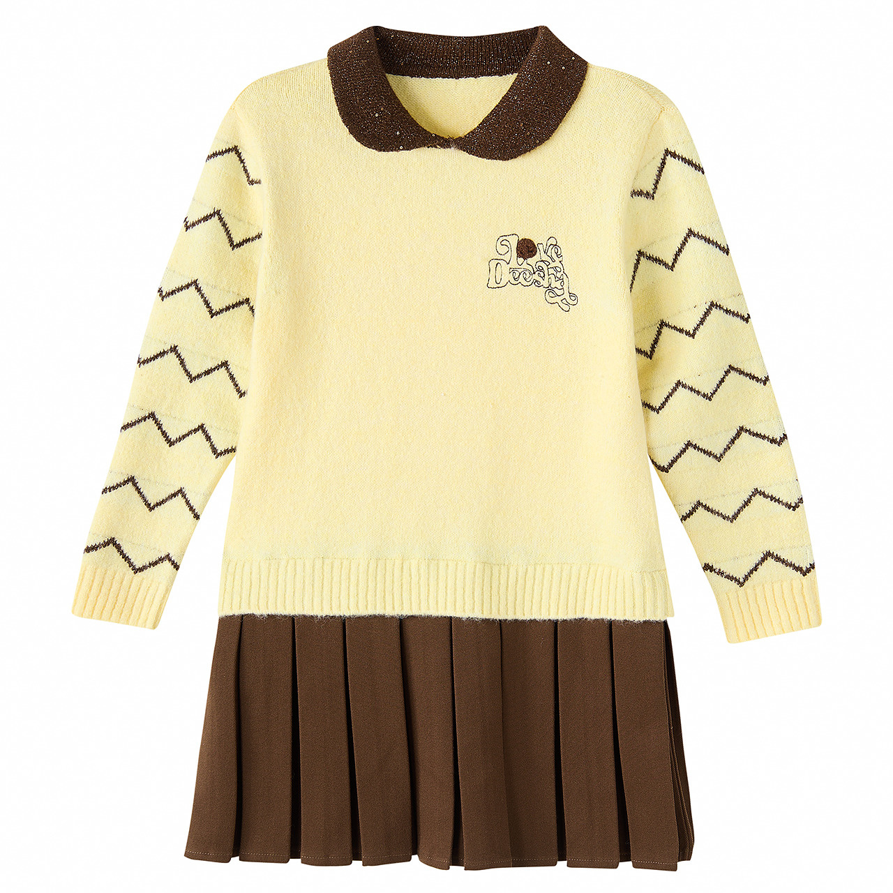 笛莎官方童装女童连衣裙冬季新款大童女孩儿童洋气可爱翻领针织裙