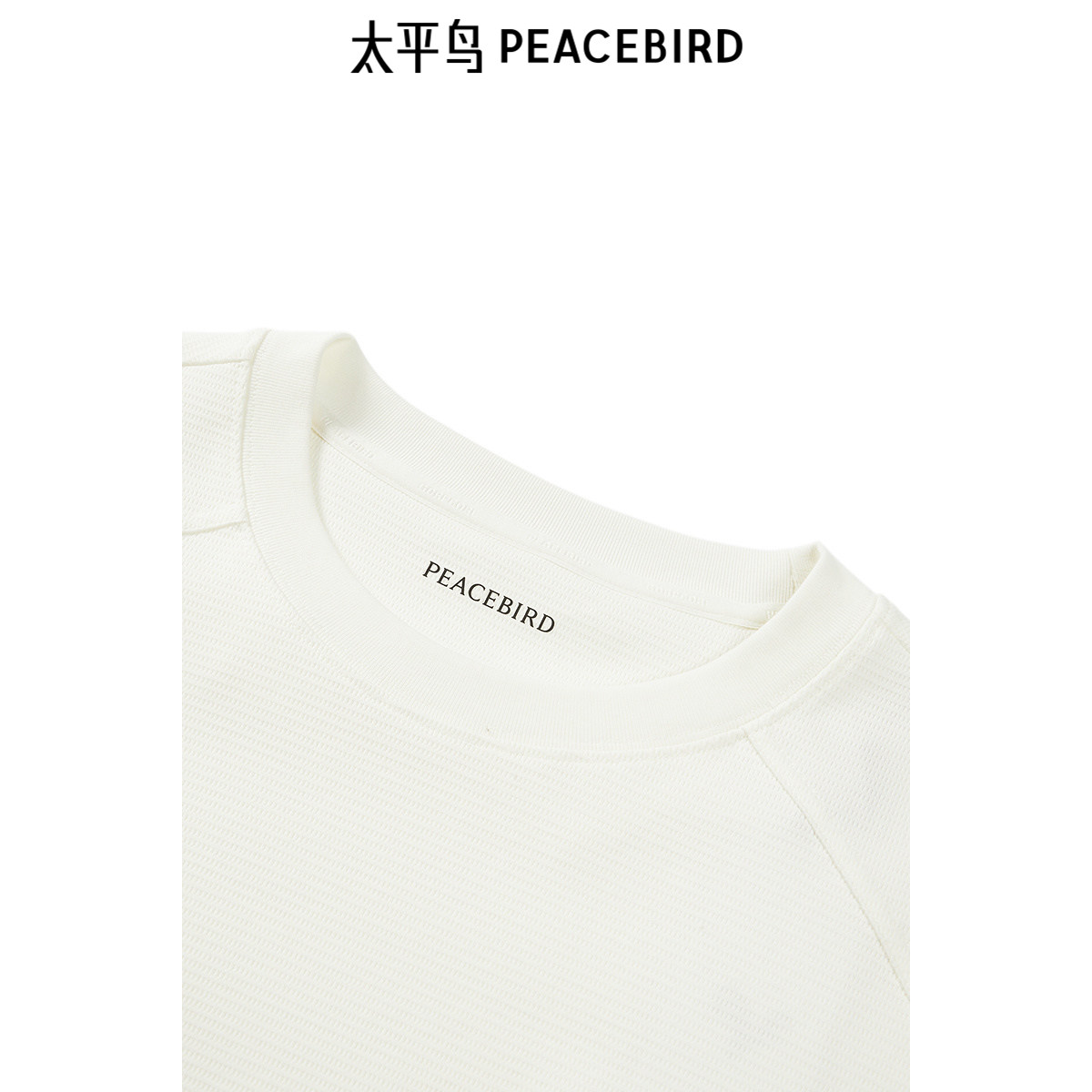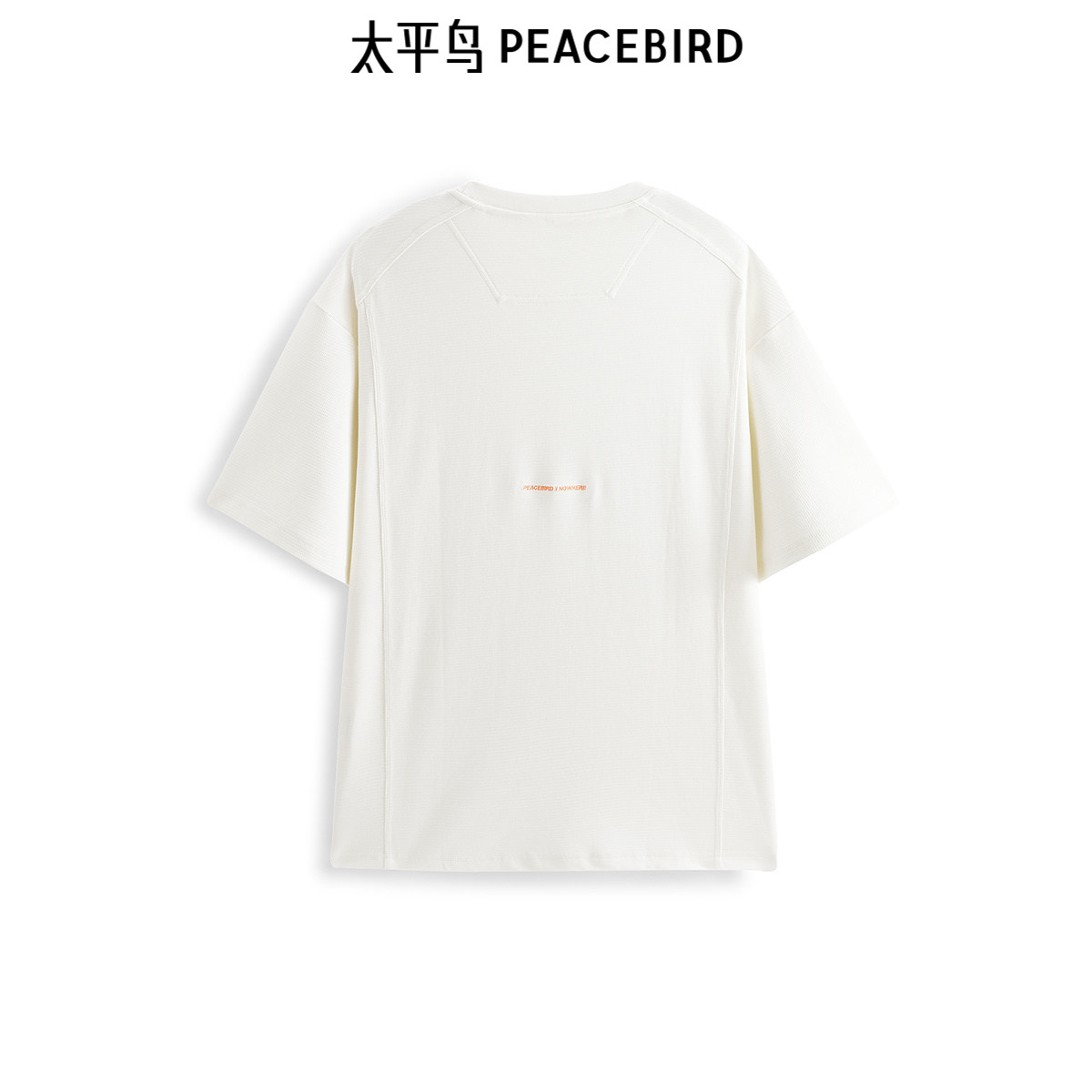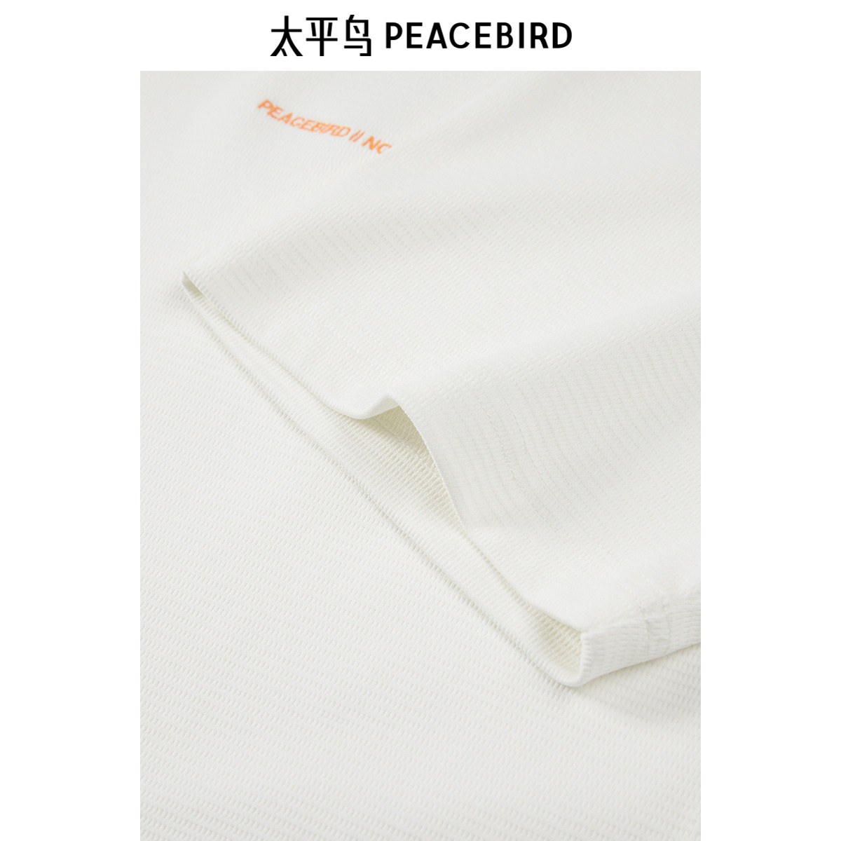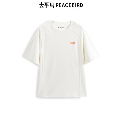太平鸟男装 休闲T恤男重磅刺绣提花米白色圆领短袖体恤男