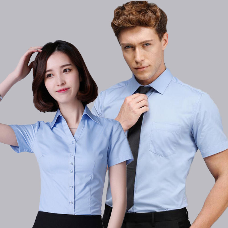 【团体工作服】蓝色工装衬衫男套装销售男女同款长袖正装衬定做