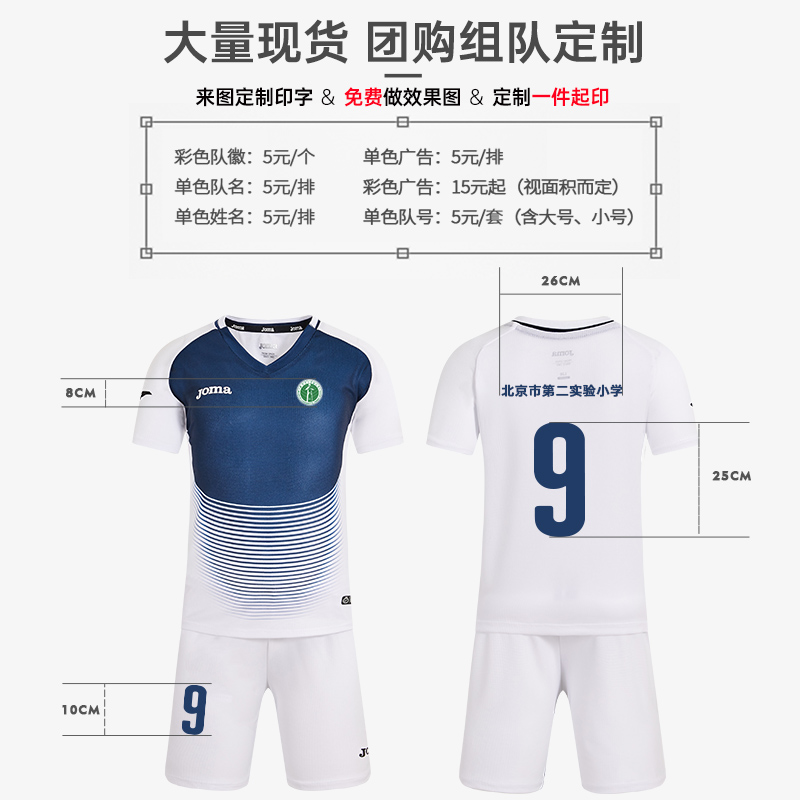 JOMA荷马 儿童足球服套装 男童足球训练服定制组队服女小学生球衣