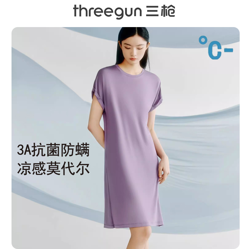 三枪睡裙女莫代尔夏季短袖宽松抗菌凉感性感睡衣休闲可外穿家居服