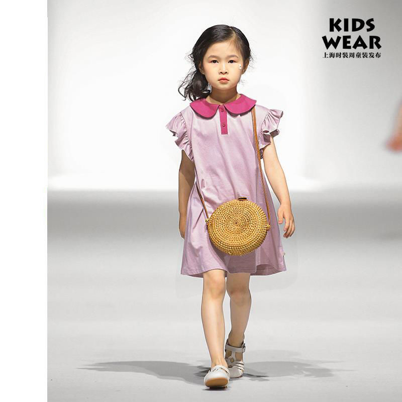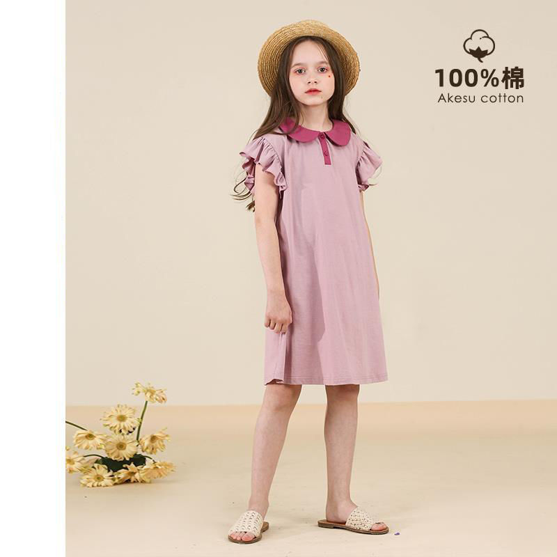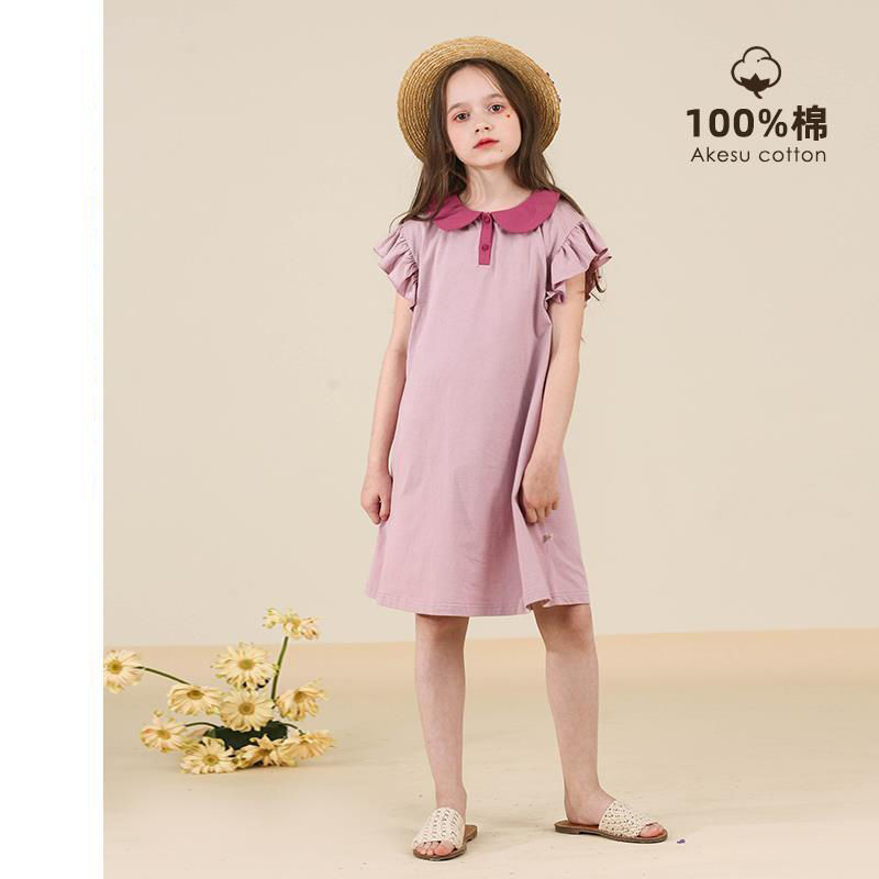 女童夏季新款连衣裙娃娃领飞袖纯棉撞色儿童polo裙中长裙洋气甜美