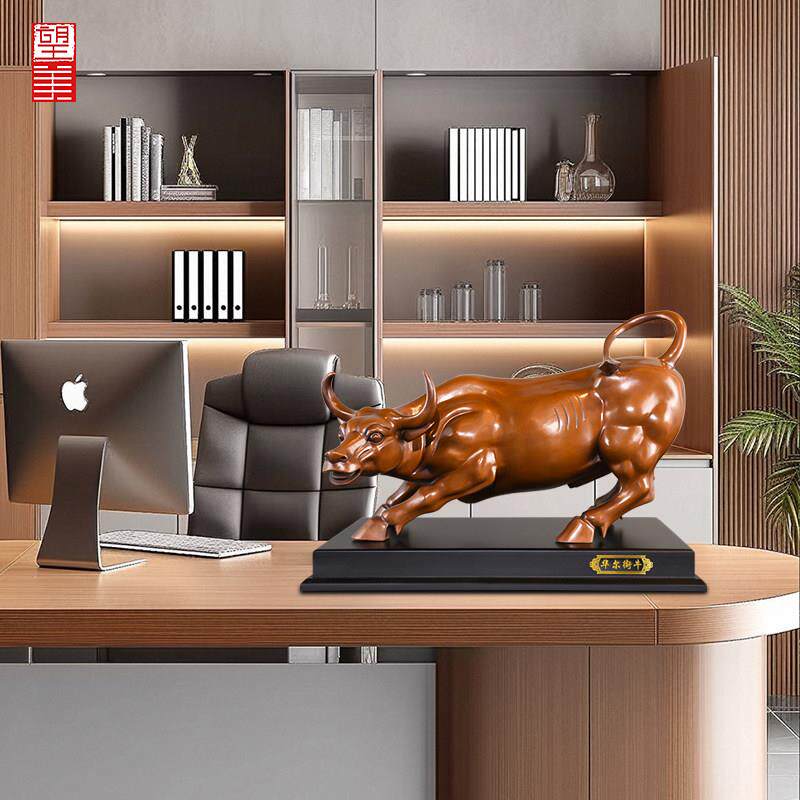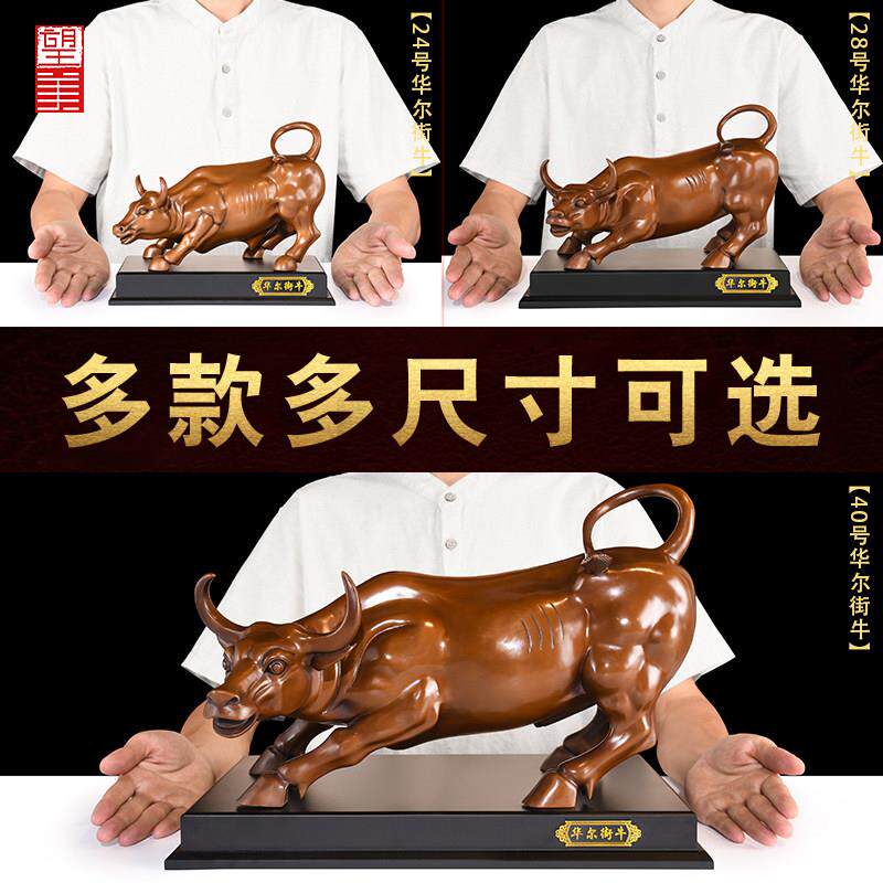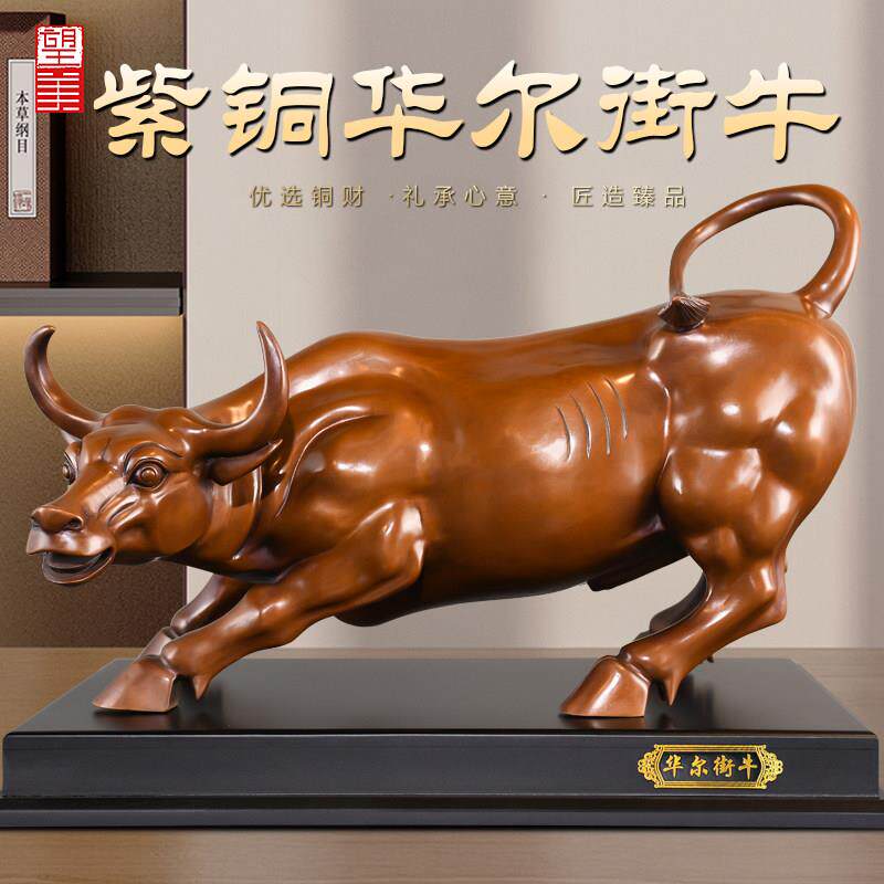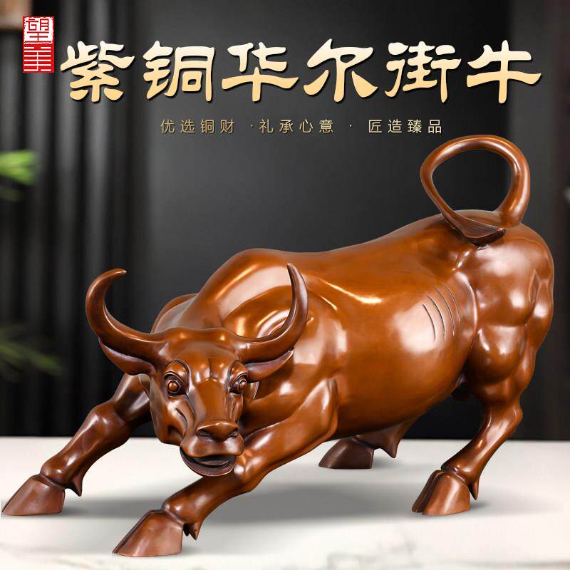 紫铜华尔街牛摆件客厅办公室高端吉祥物炒股股市牛气冲天大号铜牛