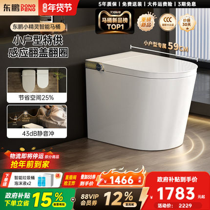 【政府补贴20%】新款东鹏小精灵智能马桶小户型全自动智能坐便器