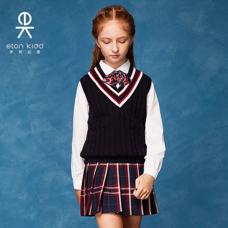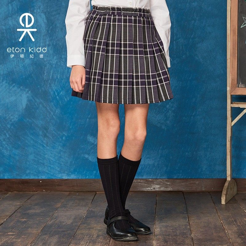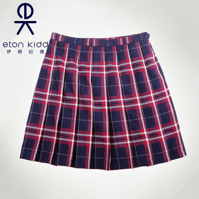 伊顿纪德校服学院风枣红色格子短裙女大童半身裙中小学生百褶裙子