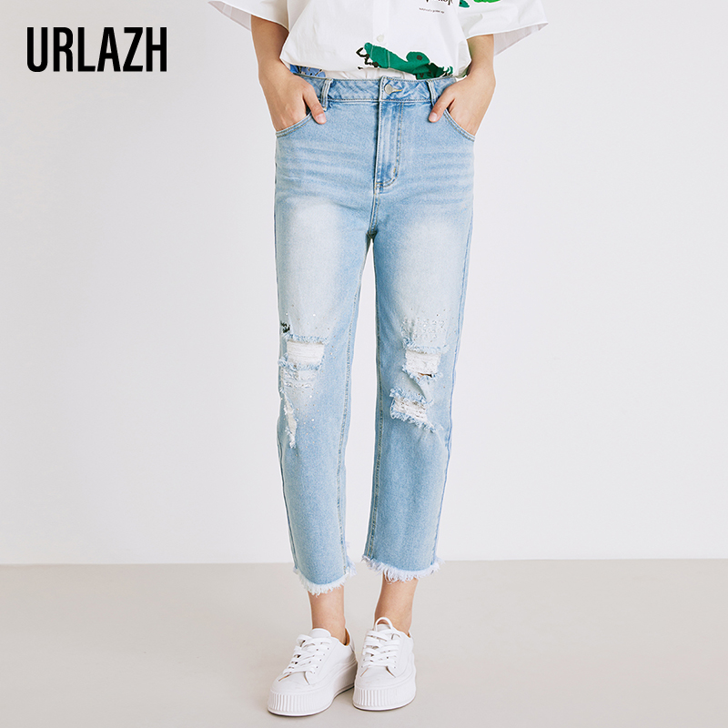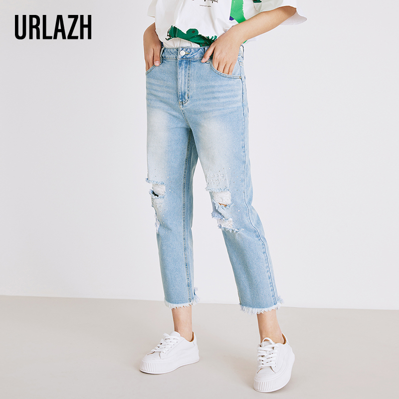 urlazh/有兰复古破洞牛仔裤