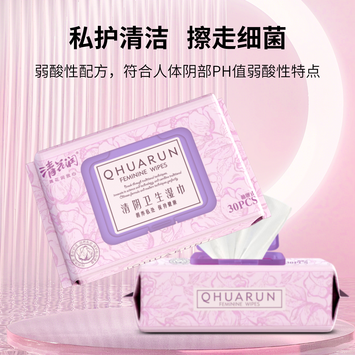 清花润卫生湿巾洁阴私处房事湿巾家用男女事后清杀菌清阴30片*6