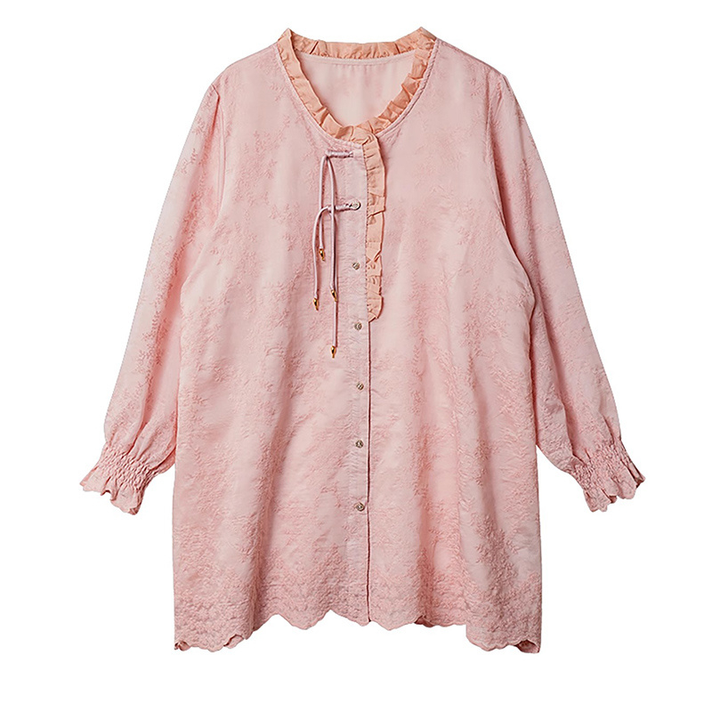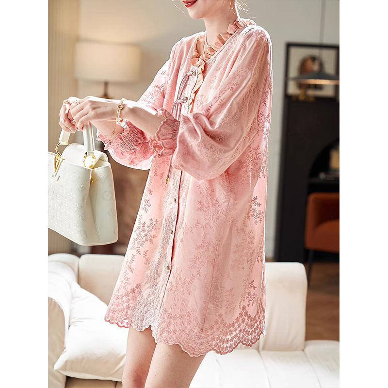 爵莱菲圆领新中式刺绣衬衫裙2025秋季减龄宽松长袖直筒连衣裙大码