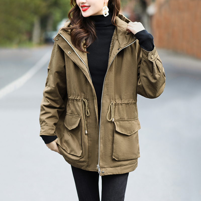 加绒加厚风衣女欧洲站大码外套女2024新款百搭派克服宽松女装冬装