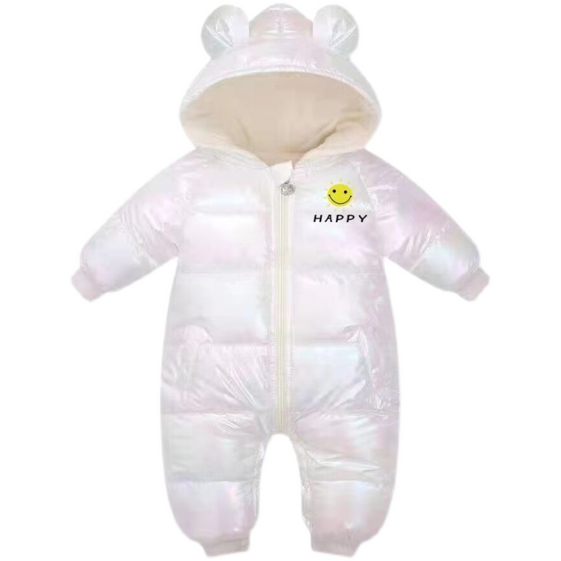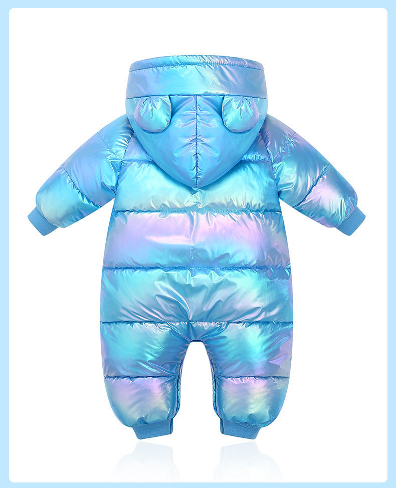 宝宝冬季外出羽绒服连体衣初生婴儿衣服冬款加绒加厚外出爬服免洗