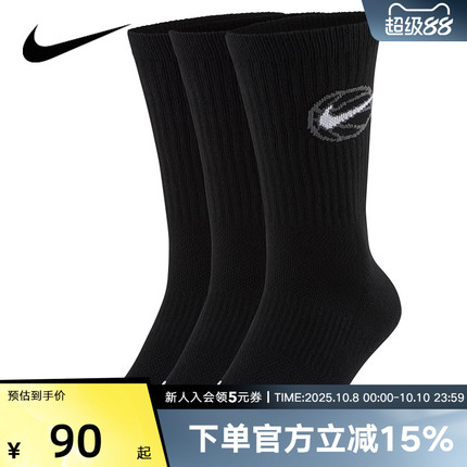 Nike耐克男袜女袜秋季新款三双装中筒篮球运动袜子DA2123-010