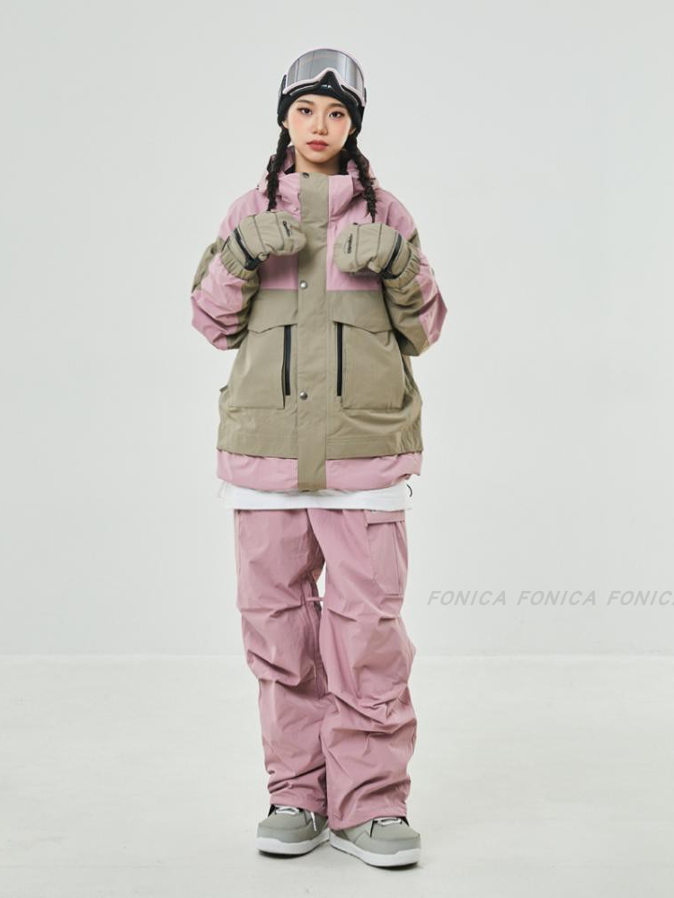 2324DIMITO滑雪服韩国防水保暖加厚男女款单板双板粉色连帽开衫2L