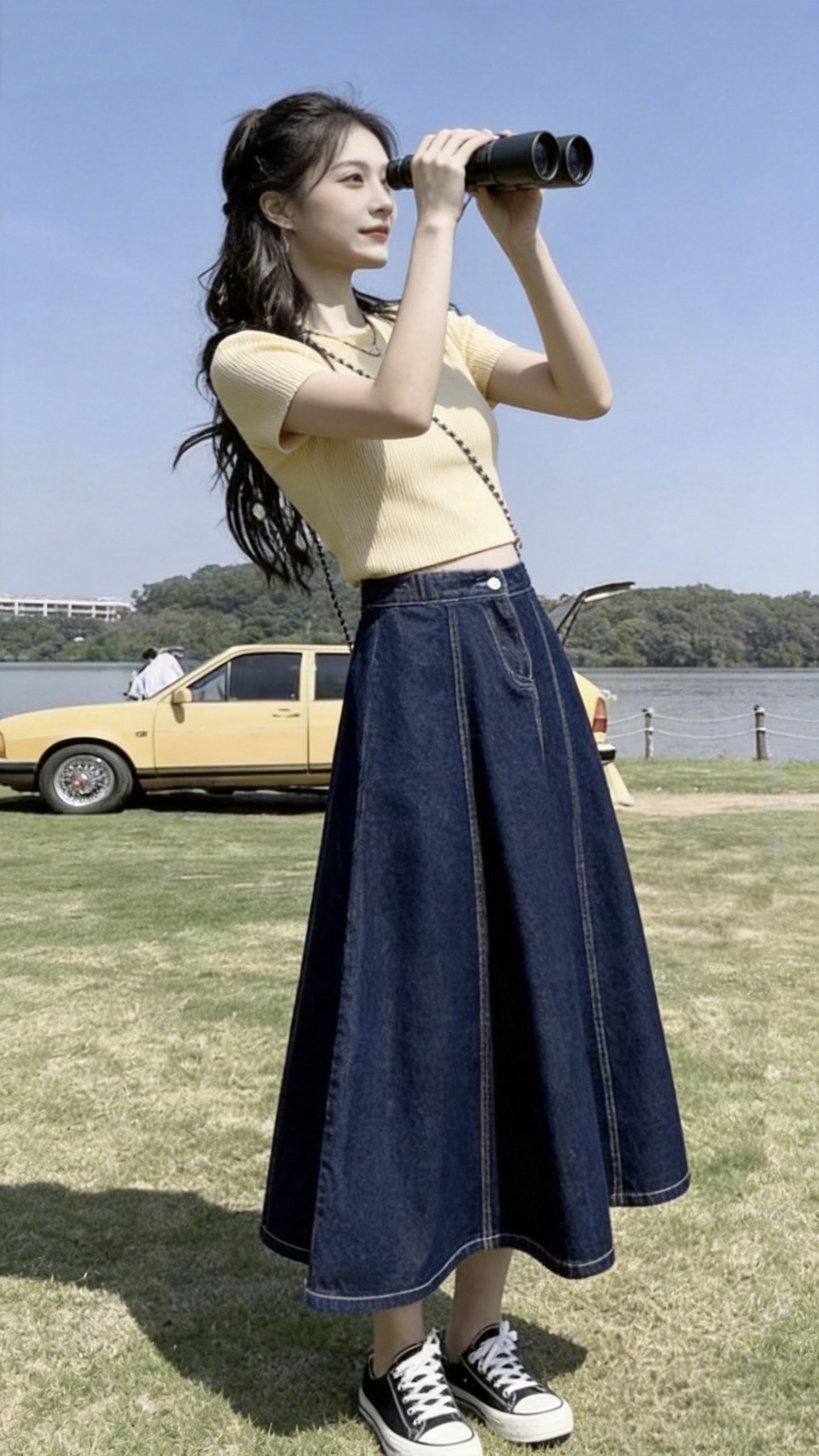 2026春秋新款松紧腰牛仔复古半身裙女a字伞裙口袋休闲时尚摆长裙