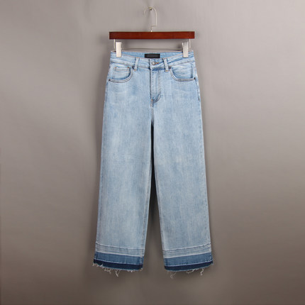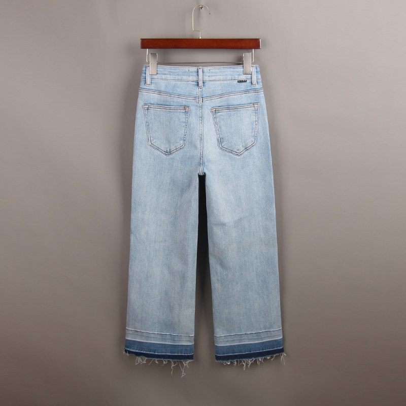 2024春新款宽松阔腿直筒牛仔裤女外单200斤大码高腰弹力毛边9分裤