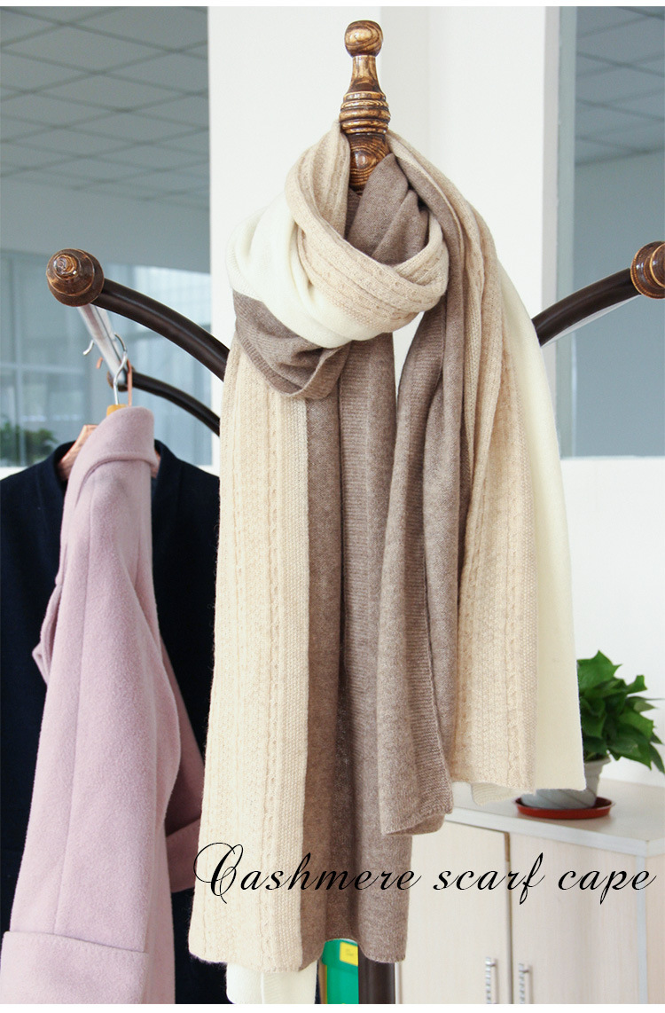 暴美!白绒 青绒 紫绒三色拼接山羊绒针织围巾披肩经典款工厂直营