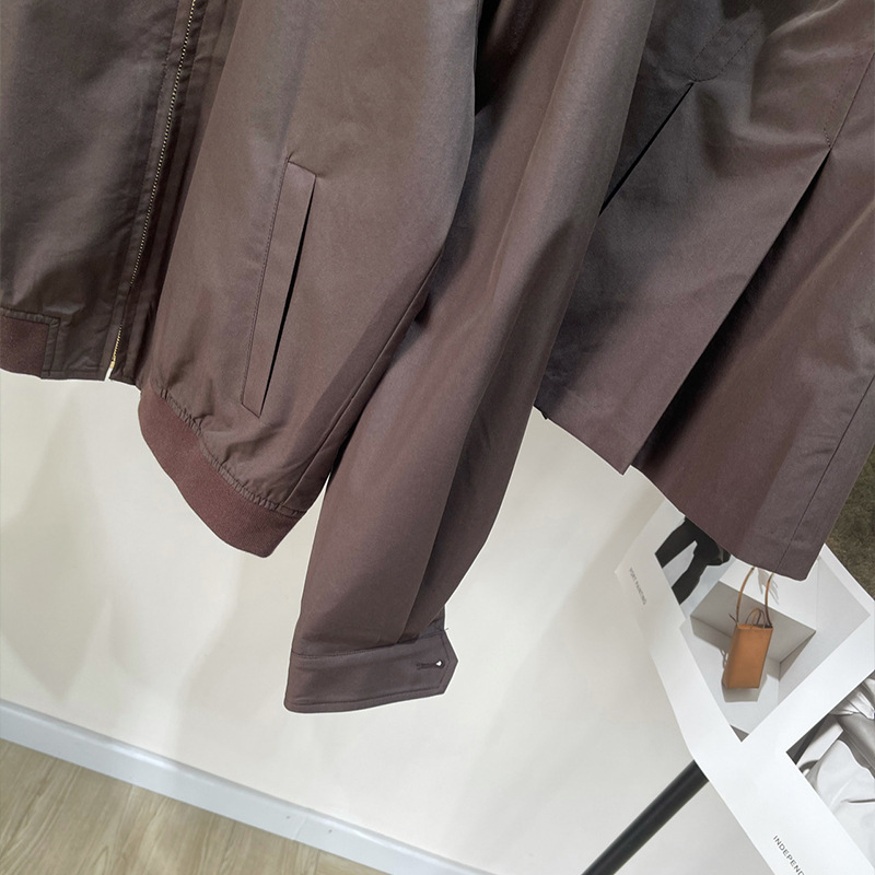 2025春夏可可棕拼皮拉链夹克外套字母腰带百褶短裙宽松男女款