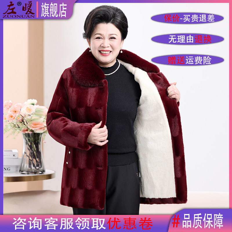 中老年人大码女装加厚貂绒大衣胖奶奶加肥保暖棉袄妈妈毛领外套