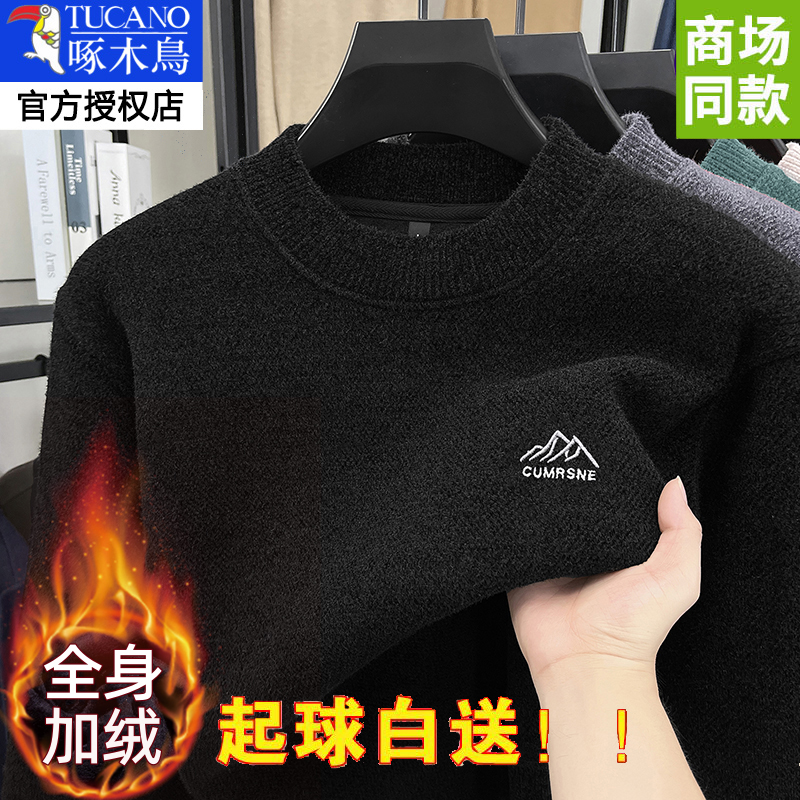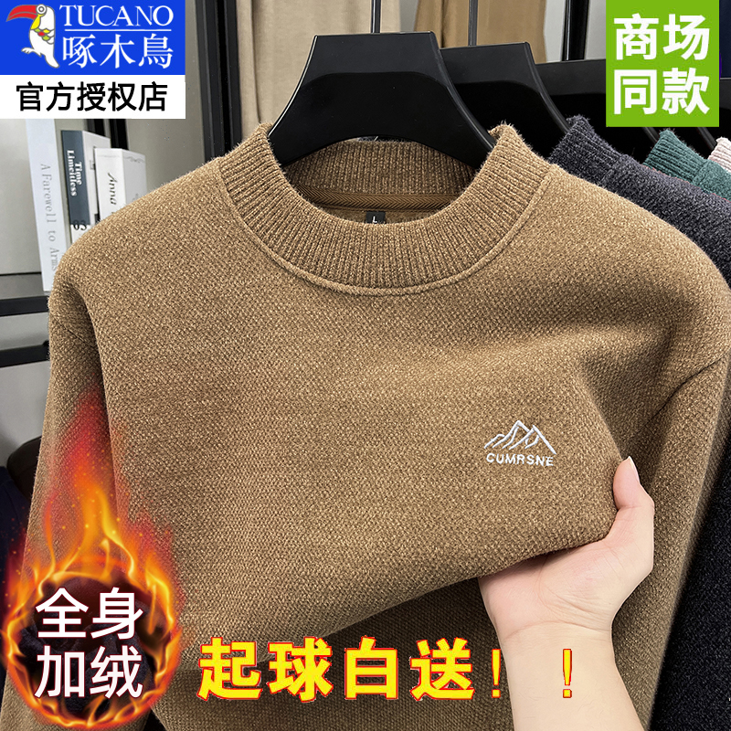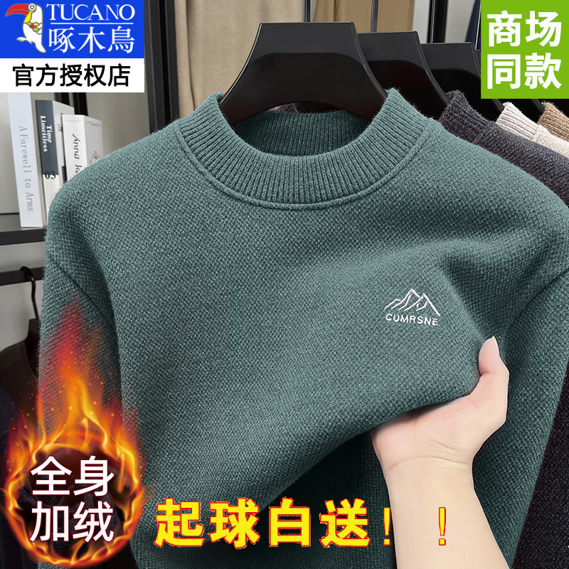啄木鸟毛衣男士加绒加厚款冬季半高领特厚男装保暖打底羊毛衫上衣