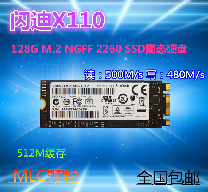 闪迪 X110 SD6SP1M 128G 512G 2260 NGFF M.2 DELL笔记本固态硬盘