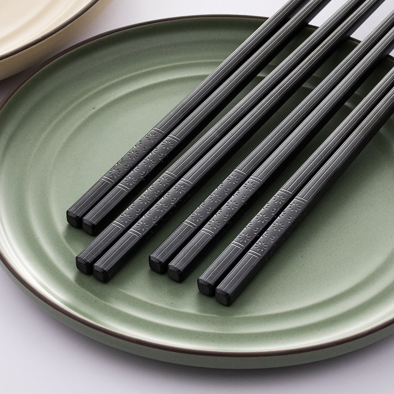 润天下合金筷家用10双装高档耐高温防霉酒店餐厅日式料理尖头筷子