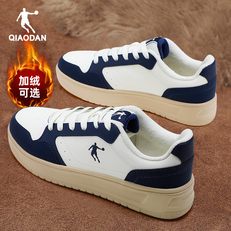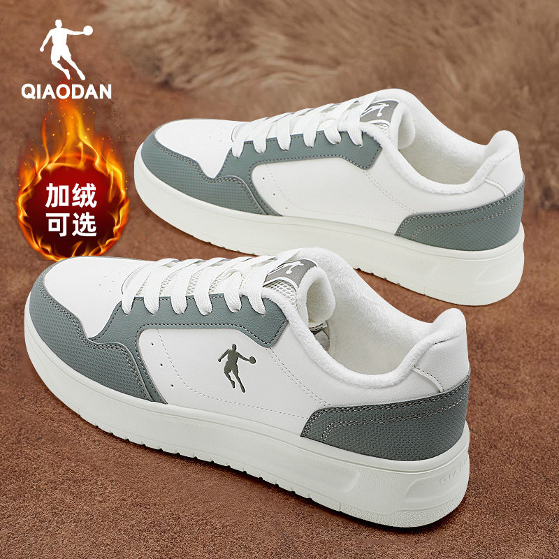 乔丹加绒板鞋男二棉鞋2025冬季新款官方正品加厚保暖小黑鞋休闲鞋