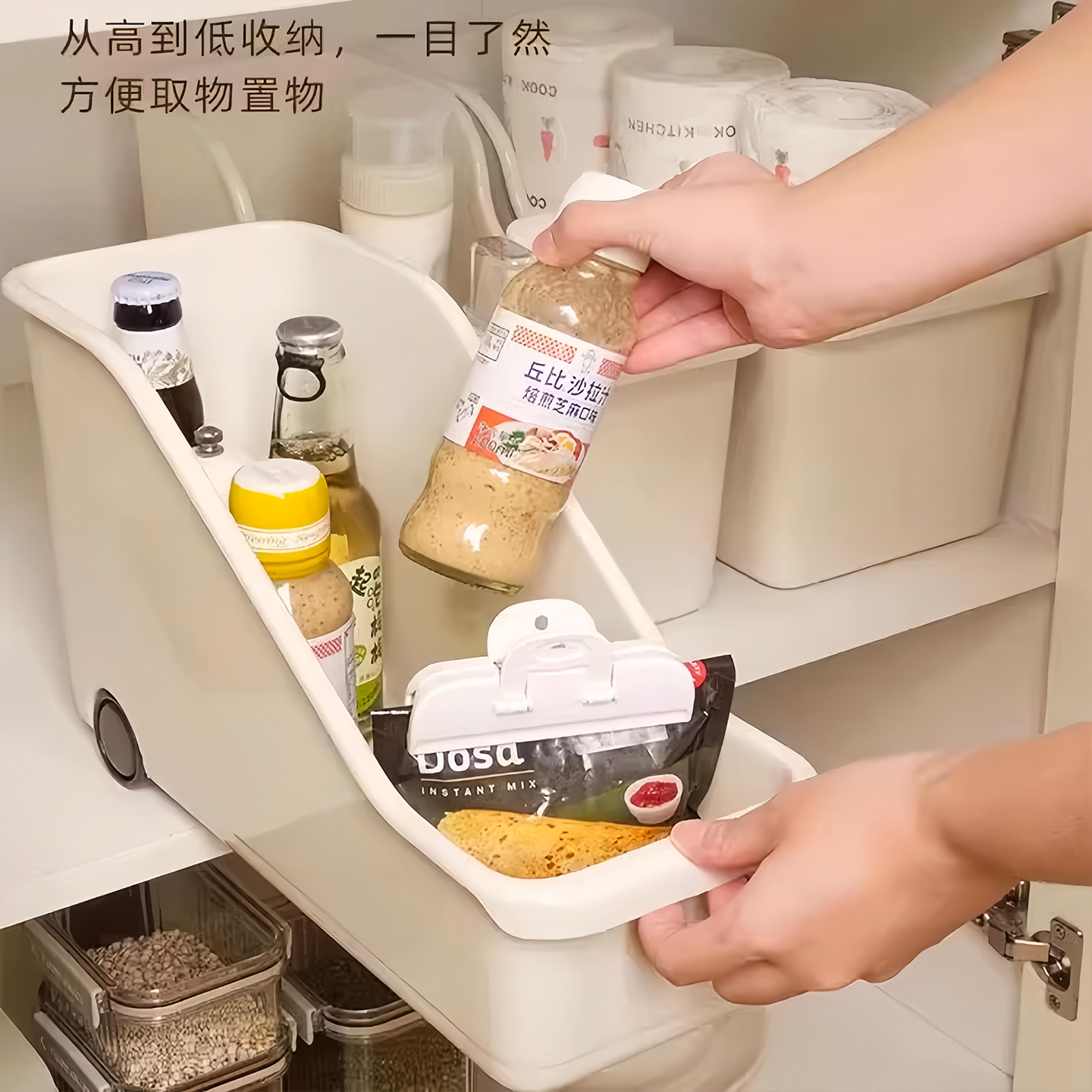厨房锅具收纳盒调味料整理带滑轮