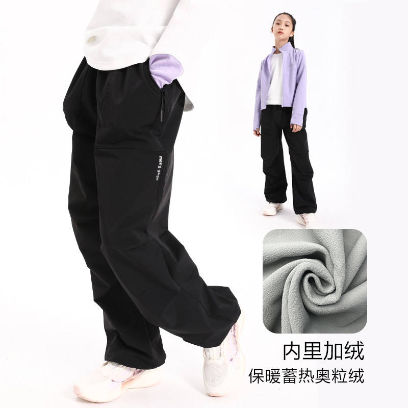儿童工装裤运动裤A类春秋阔腿裤软壳裤 女童冲锋裤男童防水长裤冬
