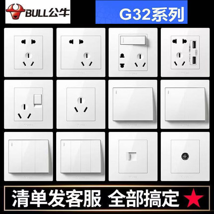 公牛G32开关插座面板白色86型暗装电源开关插座五孔墙壁86面板