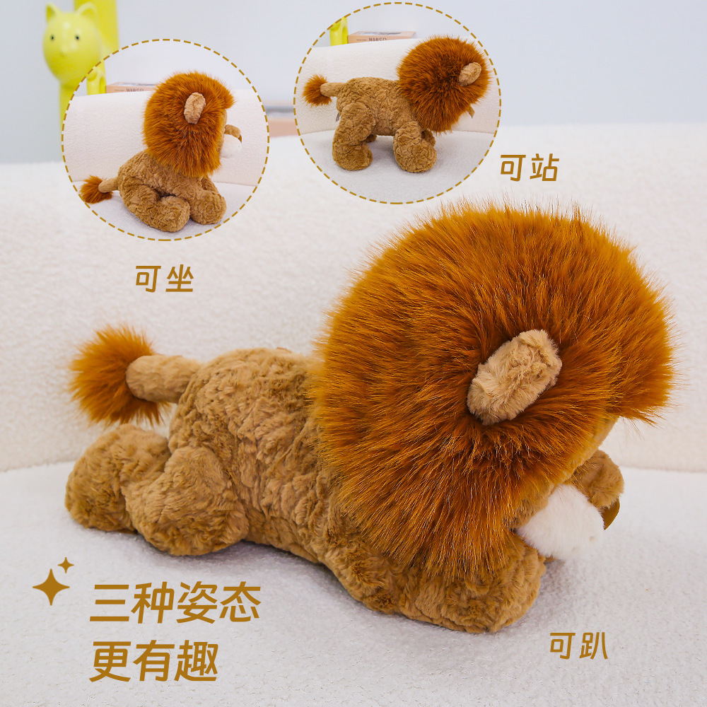 新款仿真狮子玩偶毛绒公仔动物园同款可爱节日礼物布娃娃抱枕
