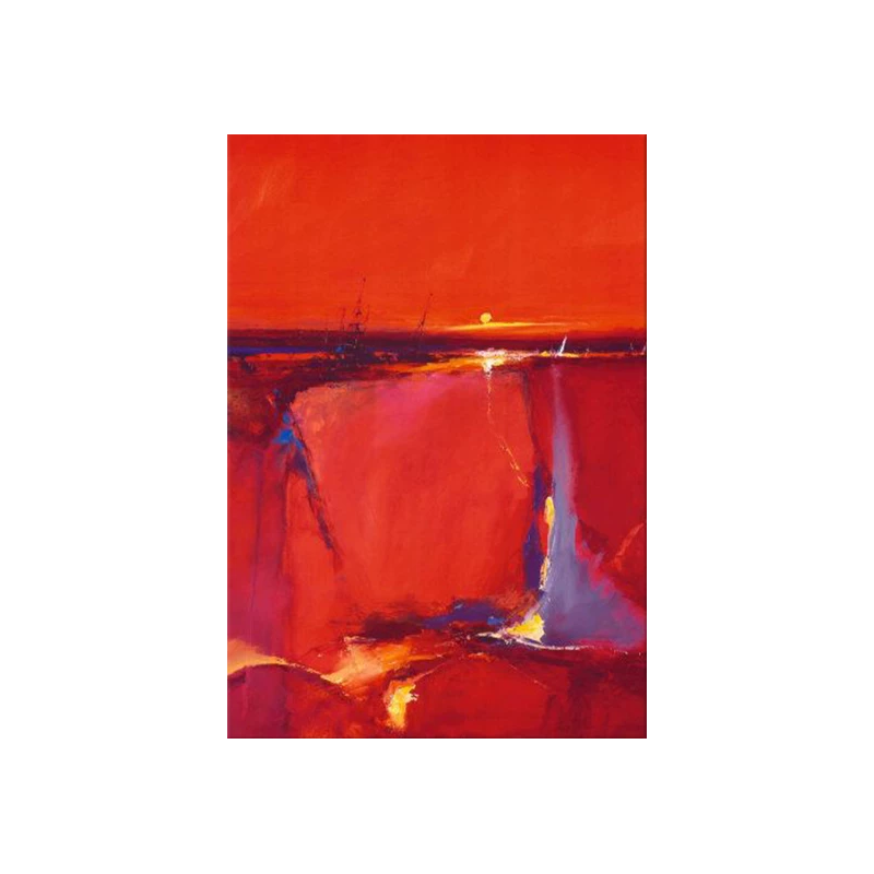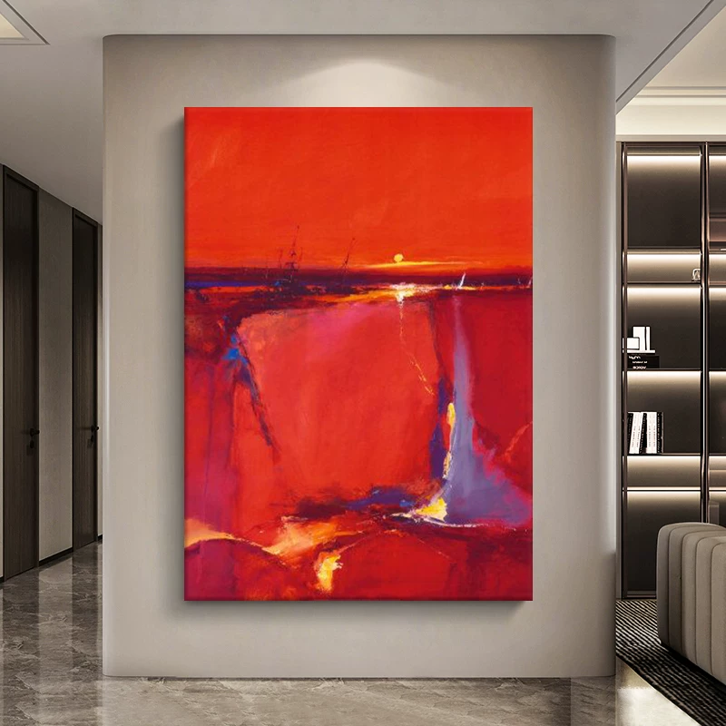 MHD手绘油画《红韵乐章》办公室挂画酒店红色油画立体玄关装饰画