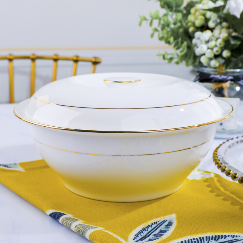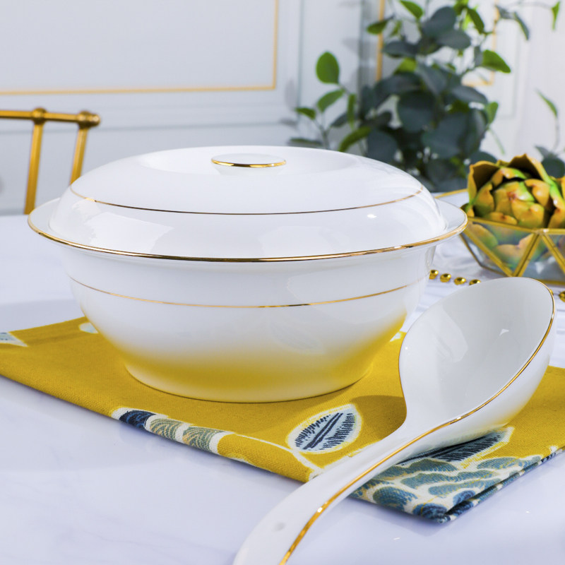 景德镇家用骨瓷汤煲品锅陶瓷金边大号汤锅欧式大汤碗带盖餐具