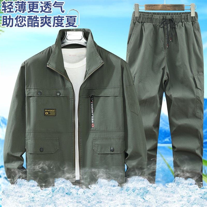 夏季薄款工作服套装男电焊工防烫耐磨劳保服工厂车间长袖工装