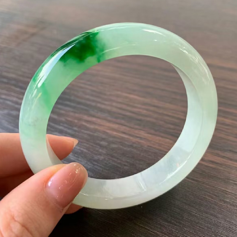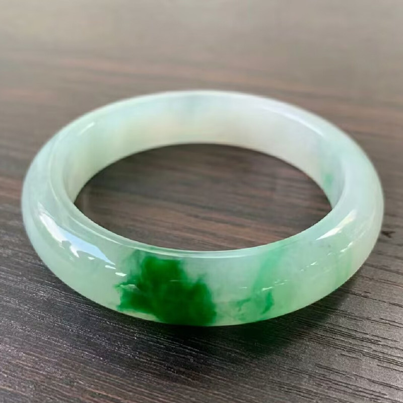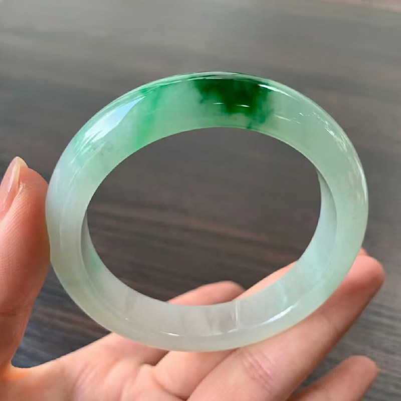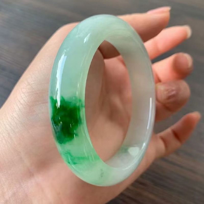翠夫人海外购翡翠天然A货翡翠手镯飘花带绿手镯玉镯源头直播中
