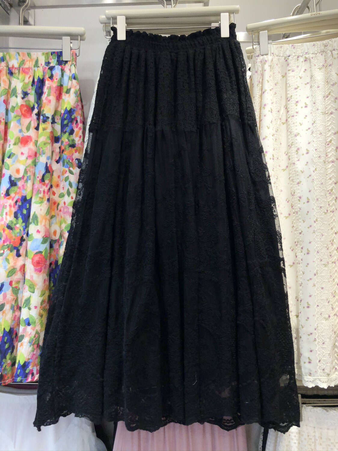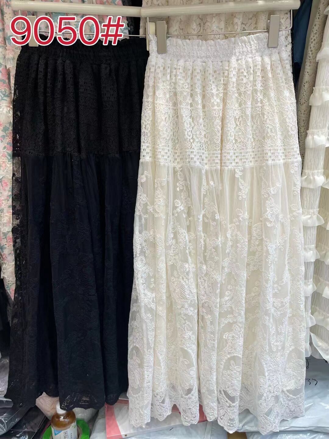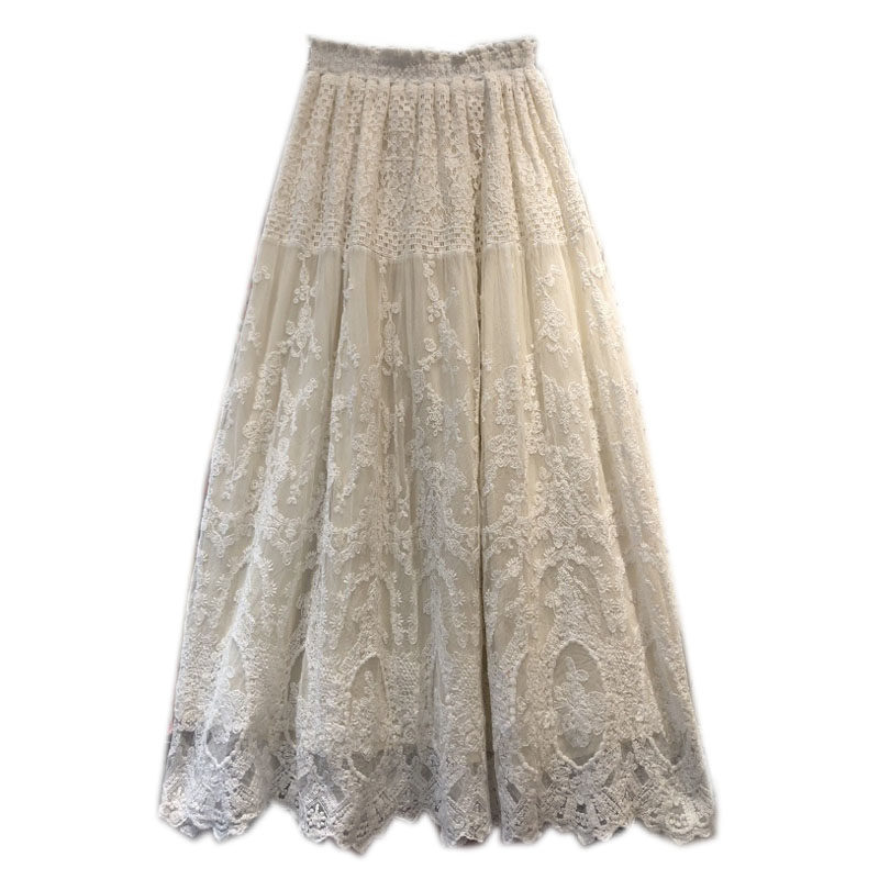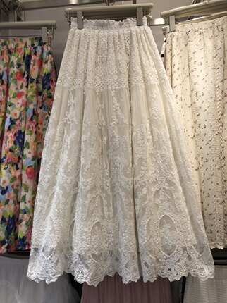 2026春季韩版ins松紧腰大摆钩花蕾丝半身裙女温柔 重工刺绣长裙仙