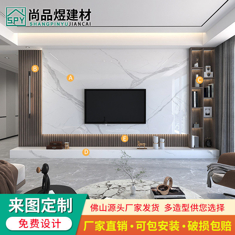 岩板电视背景墙悬空大理石瓷砖现代轻奢客厅影视墙地台抽屉玻璃柜