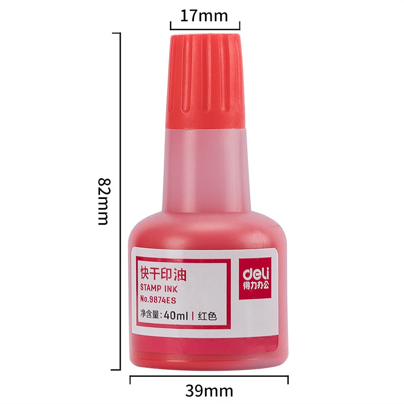 得力9874ES大容量40ml红色快干印油印泥速干印台墨水红印章油补充