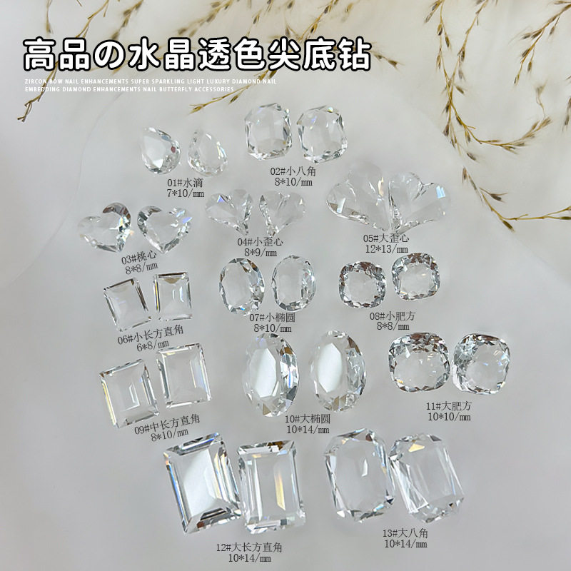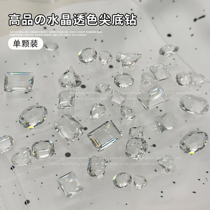 高品透明尖底钻美甲钻饰品纯白2025新款网红爆闪歪心鸽子蛋玻璃钻